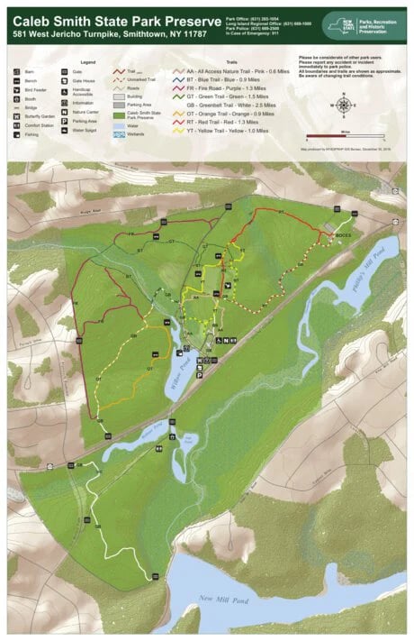 The Caleb Smith State Park Preserve offers woodland trails, scenic views, and a true escape from suburban bustle.