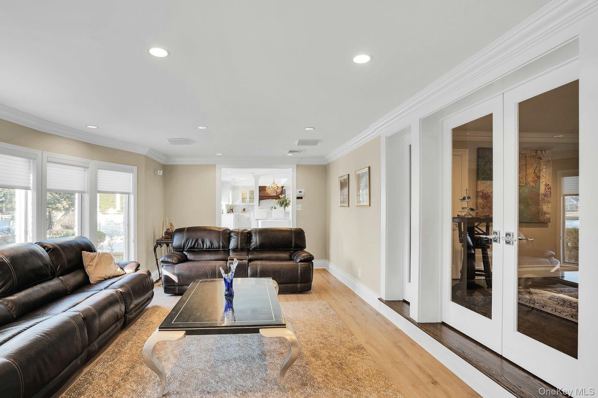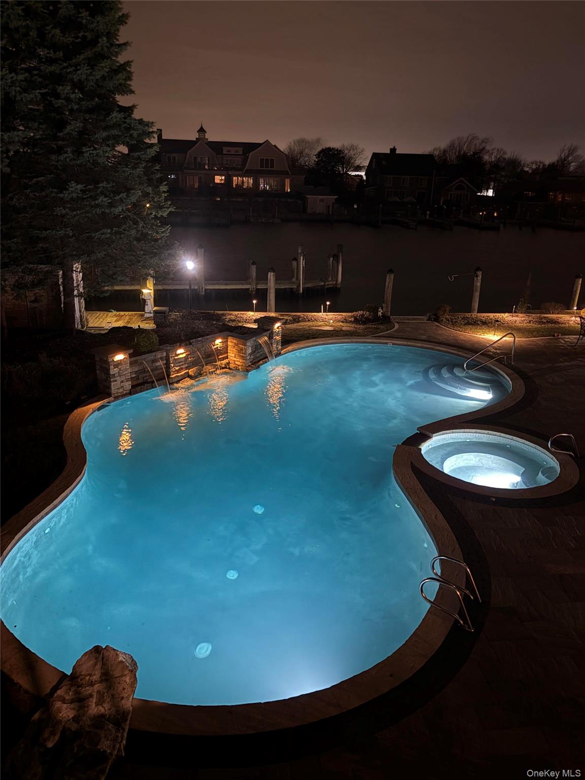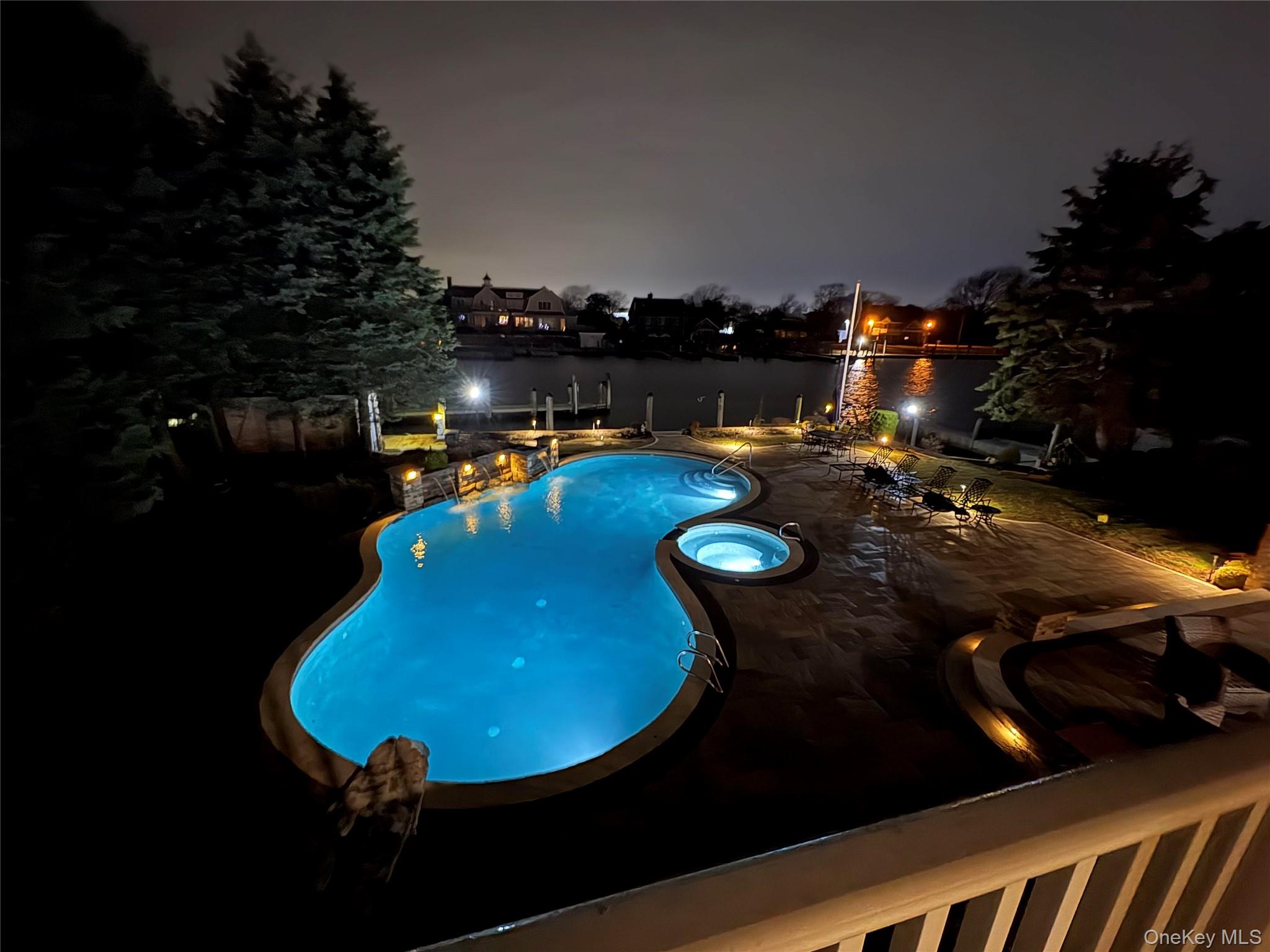Privately gated, prestigious waterfront home in the heart of Bayberry Point Estates. Drive up the tree lined driveway and around the beautiful fountain to be greeted by new 10' mahogany entry doors, a two story entrance, marble floors, custom iron banisters and crystal Murano chandelier. From the moment you step inside this beautiful home you have a view of the flowing waterways. Windows, doors and skylights all around really brings the outside in. Newly renovated gourmet kitchen features radiant heated floors, fabulous center island with new custom granite counter, newly painted cabinets with designer hardware, 6 burner Wolf stove with grill, Wolf double ovens, Subzero refrigerator/freezer, wine cooler, refrigerator drawers and more! Custom wainscoting, gas fireplace with custom mantle & hardwood floors are an elegant touch. FDR features new coffered ceiling to add to the elegance. Den with attached bar room is a full entertainment space with big screen TV, electric fireplace and full bar overlooking the pool. Newly decorated first floor bedroom with full bath for guests. The Primary Bedroom has an amazing view of the canal and a balcony to enjoy it from. It also features 3 walk-in-closets and an ensuite bathroom. The ensuite bath is newly renovated with soaking tub, new double vanities with make-up area, beautiful chandelier and separate shower. The crown jewel of the home is the stunning yard with beautiful views and the widest canal in Bayberry for the avid boater. Sit in your pool with a cocktail and wave to the boats going by. The pool is a Gibbons gunite, salt water with waterfall and jacuzzi and brand new heater. The outdoor kitchen has new gas barbecue. Main dock is a U-Shape walk around that fits up to a 55' boat and the 2nd dock fits up to a 25' boat and can be converted to a launch. Boat house and shed in yard for extra storage. Lutron Lighting, 6 Vivant Camera Alarm System, CAC, Anderson Windows, New Interior Doors, New Washer & Dryer, All TV's Stay, New Boiler, New Custom Gutters, Garage has new custom flooring and cabinets and New Garage Doors. This is lifestyle living. X Flood Zone!! No flood insurance required. Sellers want to close in August preferably.