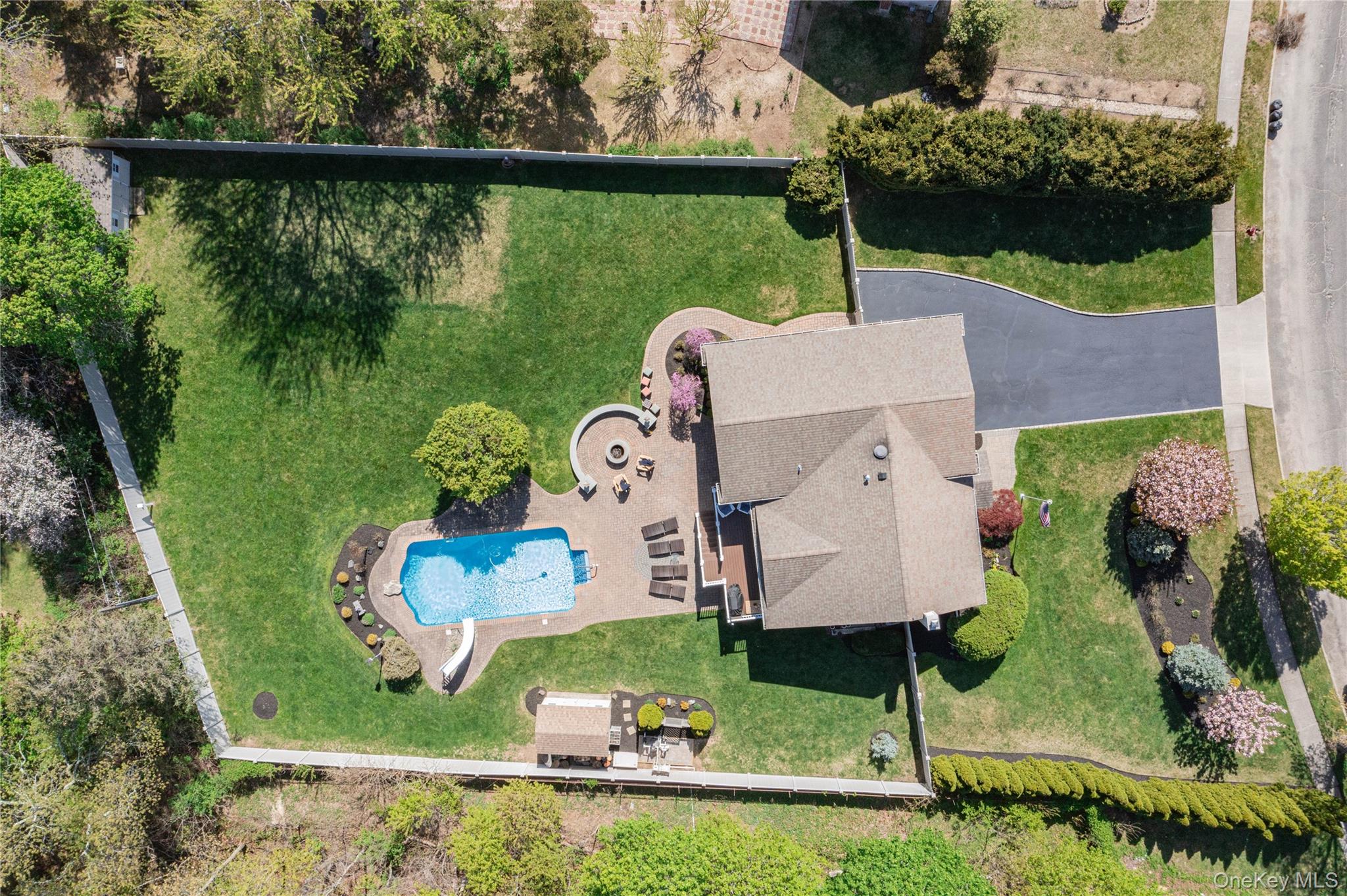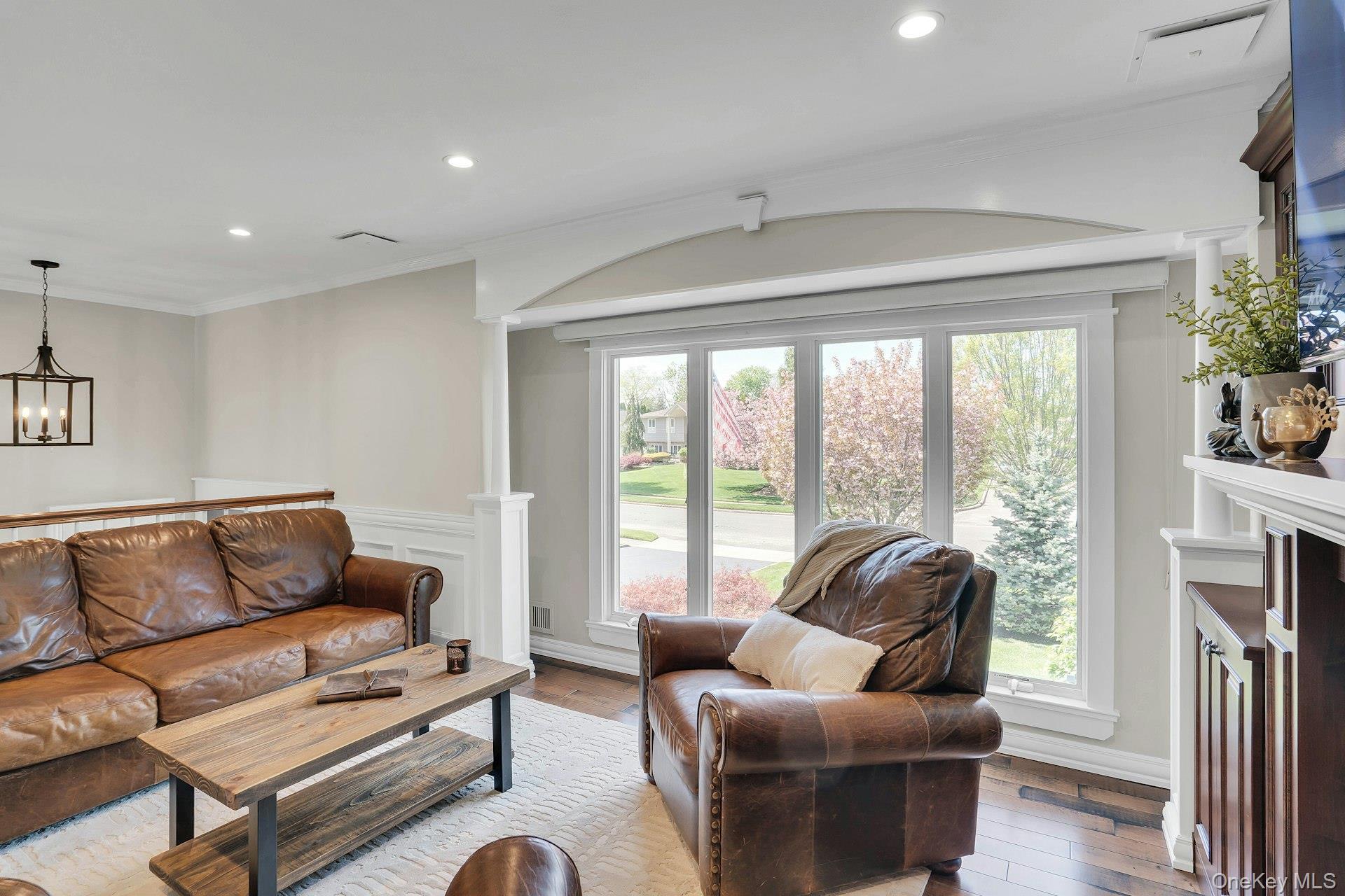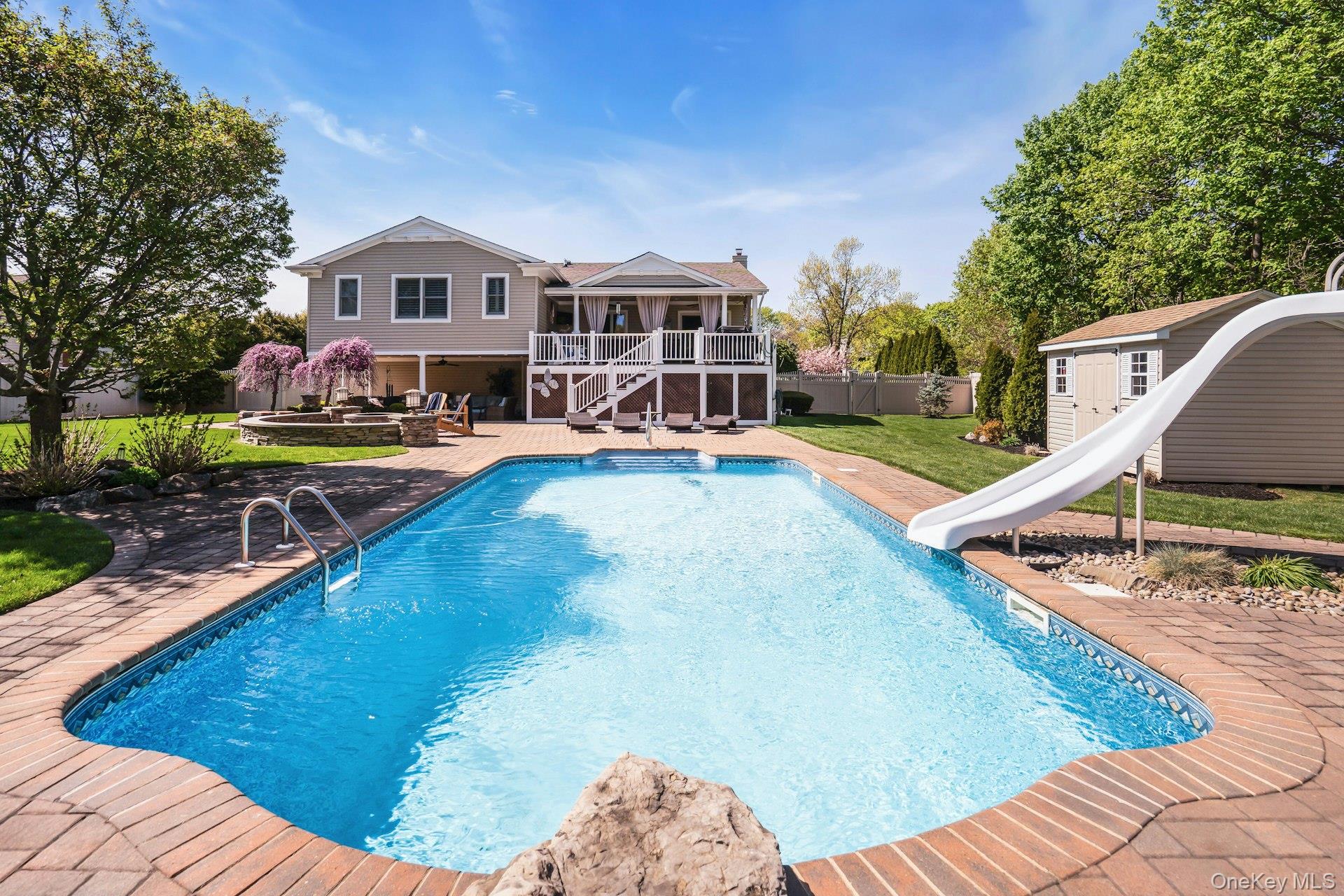 This is the one you have been looking for! Gorgeous home renovated with a meticulous touch. Curb appeal begins with the professionally landscaped property featuring specimen trees and plantings that bloom all spring, summer and fall. The home is sided with vinyl and stone that is beautiful and the front door is customized with stain glass for that wow factor entrance. Enter the home to beautiful custom wood flooring and a dressed up living room. The gas fireplace is the focal point of the room with granite, built-in shelves around it and detail to moldings. Plenty of natural light from the floor to ceiling wall of casement windows. The gourmet kitchen was renovated in 2004 with vaulted ceilings and is laid out with the chef in mind. This is a gas house so you have a Thermador 4 burner gas stove. The custom cabinets feature glass cabinets with lighting and a beautiful wine display for entertaining. The appliance wall features paneled refrigerator, wall oven, warming draw and microwave. Nice area for dining table. The primary bedroom has been expanded and renovated to perfection! The hardwood floors are beautiful and the room is big. There are 2 walk-in-closets and a private ensuite bathroom. There are plantation shutters in all of the bedrooms. The other 2 bedrooms are nice and the main bath has been updated also. The lower level features an office, a den and laundry room (Dryer is a week old). There is a full bath on this level also. There is access to the 2 car garage as well. The back door leads to large covered patio with fan light, high hats, a seating area and a table. All overlooking the gorgeous yard! From the kitchen sliders you enter another covered patio that is stunning. This is what they call, living the dream! The covered patio overlooks the pool and firepit. It is a big, flat, sunny backyard. The pool was built in 2001 and the liner is 2015. It is salt-water and the filter is one week old. It is plumbed for a gas heater. Attic with pull-down-stairs, unfinished with some flooring. Brand new Air Conditioner in 2025 with 1 zone. There is a split system in the lower level. Boiler 2019 with 1 zone. Hot Water Heater 2020. Siding, gutters,Windows, walkway, stoop all 2018. New front door lock. 200 Amp. Underground wires. Cesspool 10 years old with 2 dry wells. Roof 2013. Natural Gas house.