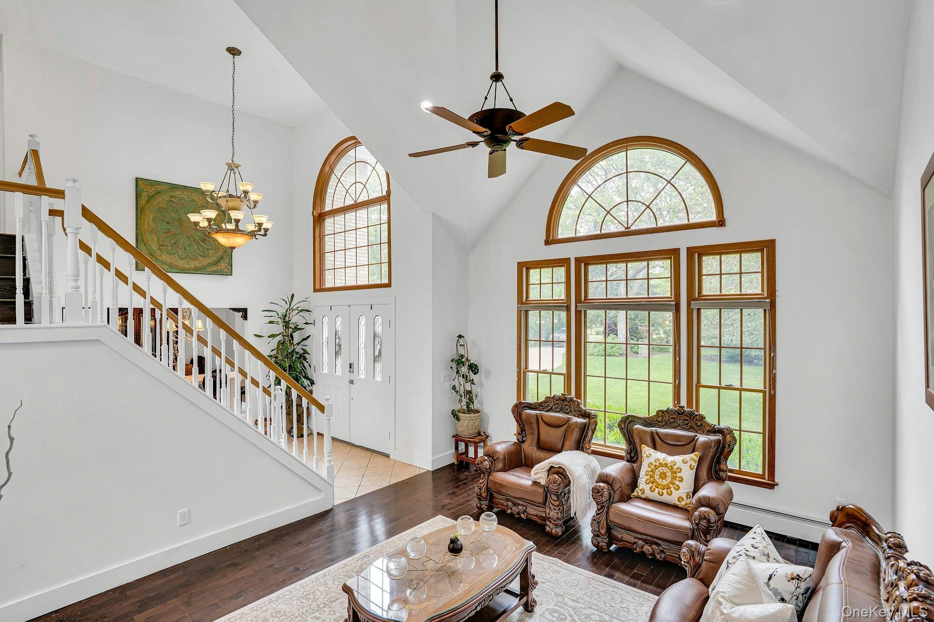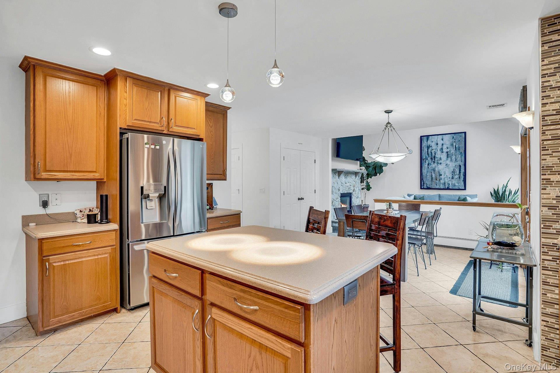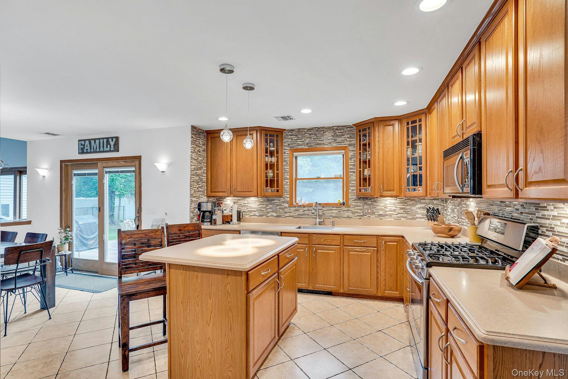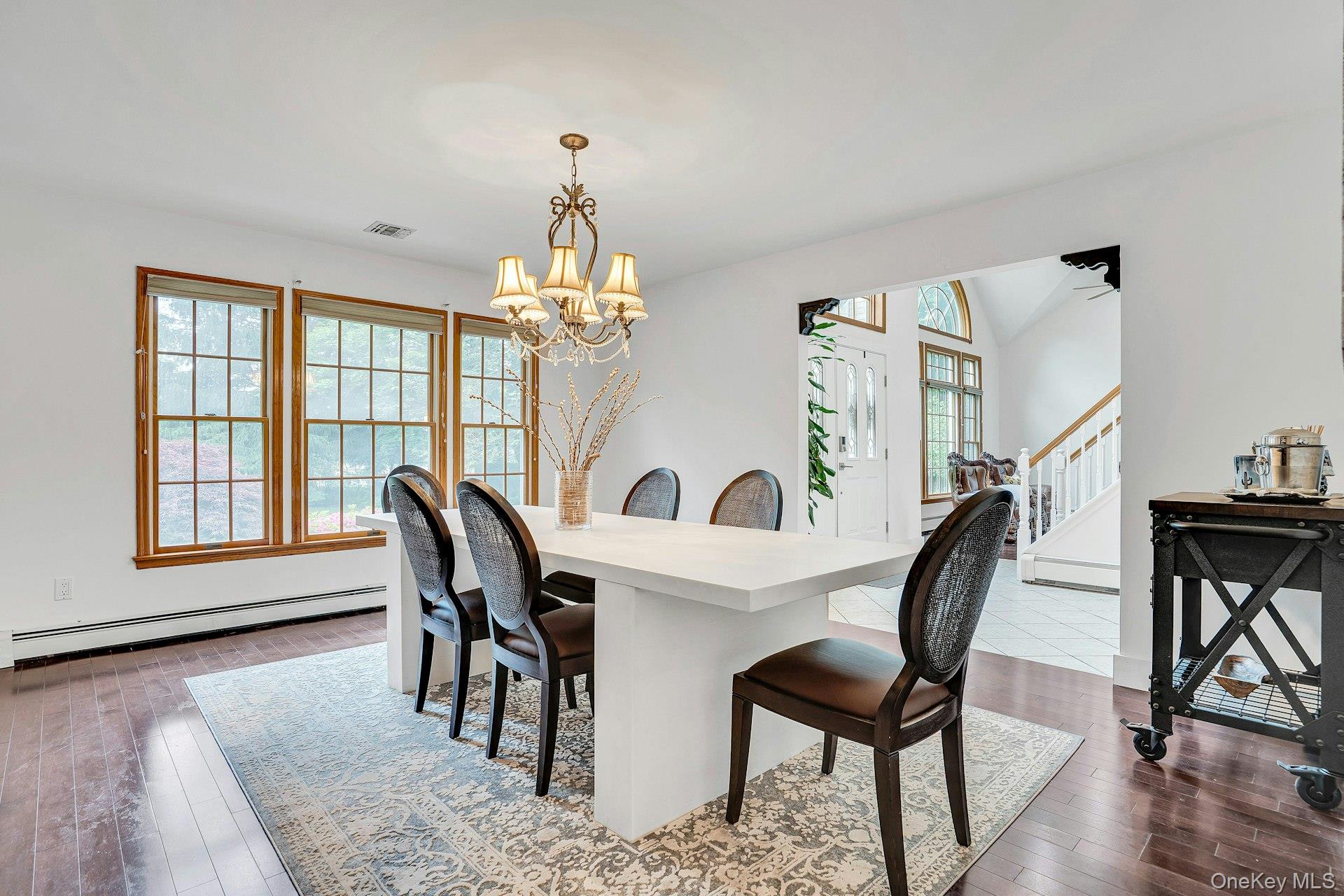 Fabulous new listing! Majestic post modern colonial in the heart of Dix Hills is awaiting the arrival of it's new buyers to walk through the door. Enter the 2 story entrance with the bridal staircase. Then be greeted by the 2 story formal living room with the beautiful dual fireplace and flowing into the family room. The The family room overlooks the sprawling yard and is open to the kitchen. The gourmet kitchen has a fabulous island, gas stove (propane) and updated appliances. The LG dishwasher is 3 years and LG refrigerator is 6 yrs. The kitchen is truly the heart of the home in this house. There is a guest bedroom and bathroom off of the kitchen.