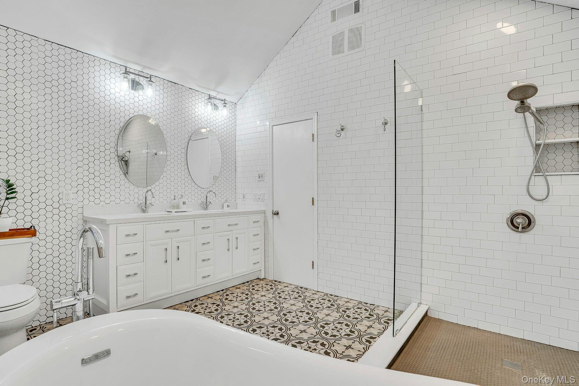 The primary bedroom features a cathedral ceiling, new carpeting and a truly beautiful bathroom.. The three other bedrooms all have brand new carpets and are ample sizes. The main bathroom has been nicely updated.