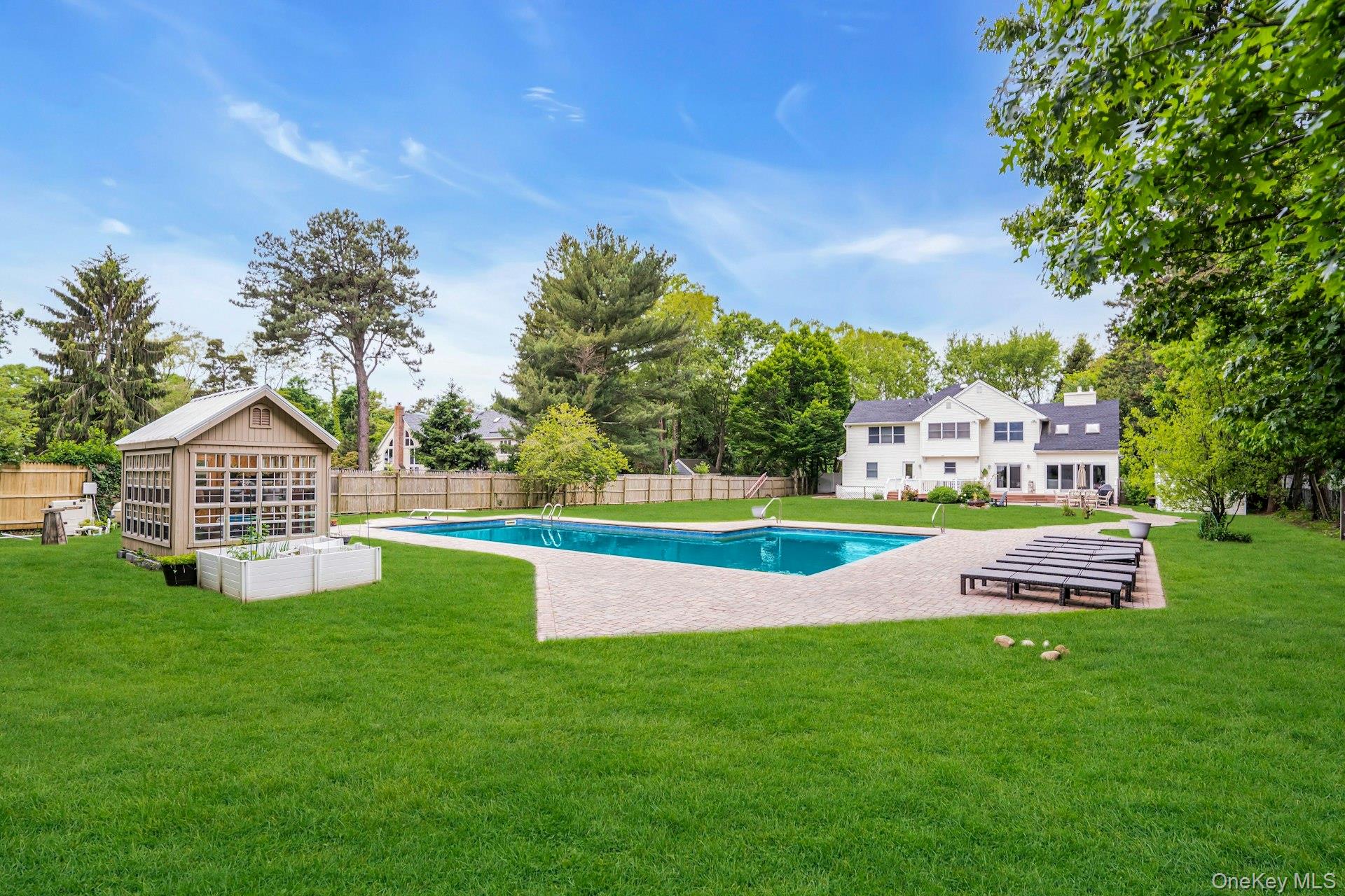 The backyard looks like paradise. Patio, sprawling lawn, big pool and greenhouse is truly beautiful. The pool sits at the back of the yard in full view. It is heated by propane and is salt water with a 2 year old filter and liner. The greenhouse is just a couple of years old and stands behind the pool with on old world feel. There are 2 Red Date Fruit Trees that are harvested every year! Summer is coming and you could be swimming in your own pool and sipping iced tea on the lounge chair and eating your homegrown red dates.