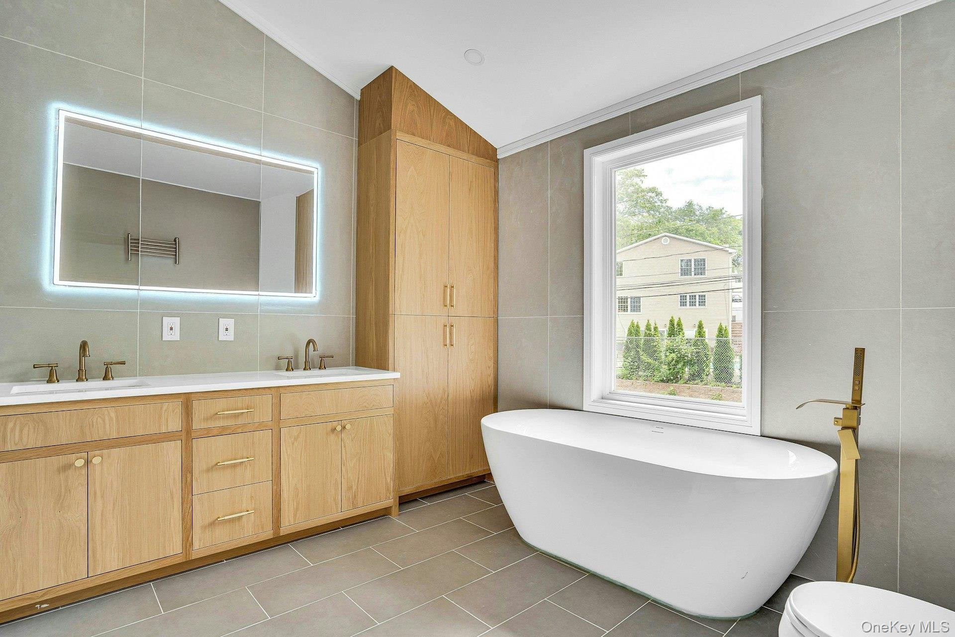 Upstairs, you'll find a beautifully expanded primary suite with vaulted ceilings, a generous walk-in closet, and a luxurious en-suite bathroom featuring a soaking tub, double vanity, and oversized shower. The additional three bedrooms are all spacious with oakwood flooring, and the second full bathroom mirrors the primary with its upscale finishes. Convenient second-floor laundry is tucked neatly behind double doors.