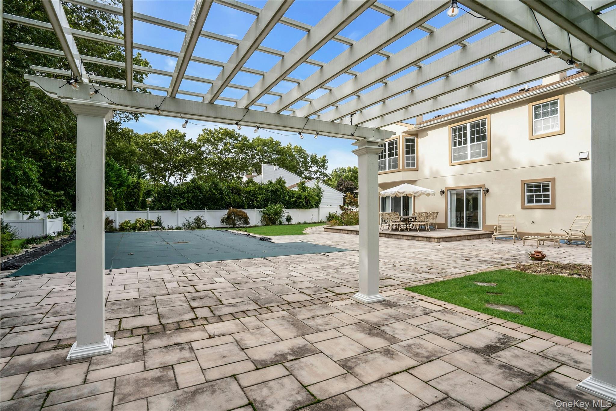 Beautifully renovated 5 Br, 3 Bath colonial. Starting with the paver driveway and mosaic design on the porch, this home really has the wow factor! Step into the 2 story entrance with the crystal chandelier and the bridal staircase to welcome you home. Attention to detail with custom millwork and hardwood floors updated in 2014, throughout. The formal living room is grand with a big picture window and flows into the formal dining room, which features another crystal chandelier and sliding glass doors out to the yard. The kitchen has been updated with custom white cabinets and quartz counters. Appliances are all updated between 2014 and 2019, and this is a gas house! The kitchen flows into the family and features a designer gas fireplace and 2 more sets of sliding glass doors that lead out to the pool. There is a first-floor guest room and a beautiful full bathroom. The laundry room is complete with a sink and custom cabinets for extra storage. The second floor continues with the hardwood floors and a wonderful loft overlooking the first floor. The primary bedroom has high ceilings, 2 walk-in closets, and a fabulous ensuite bathroom. The bathroom has a separate shower, soaking tub, and double vanity. A true spa experience. 3 more nice bedrooms and a full bath. Full, unfinished basement with outside entrance. The luxurious backyard is all paver stone with a nice pergola and shed. Relax in the in-ground pool. Boiler 1999, Cesspool 1999, Siding 2018, Natural Gas, Sprinklers in front and back, 8 zones, Pool liner 2014, Two Zone Air-Conditioning System 2014.