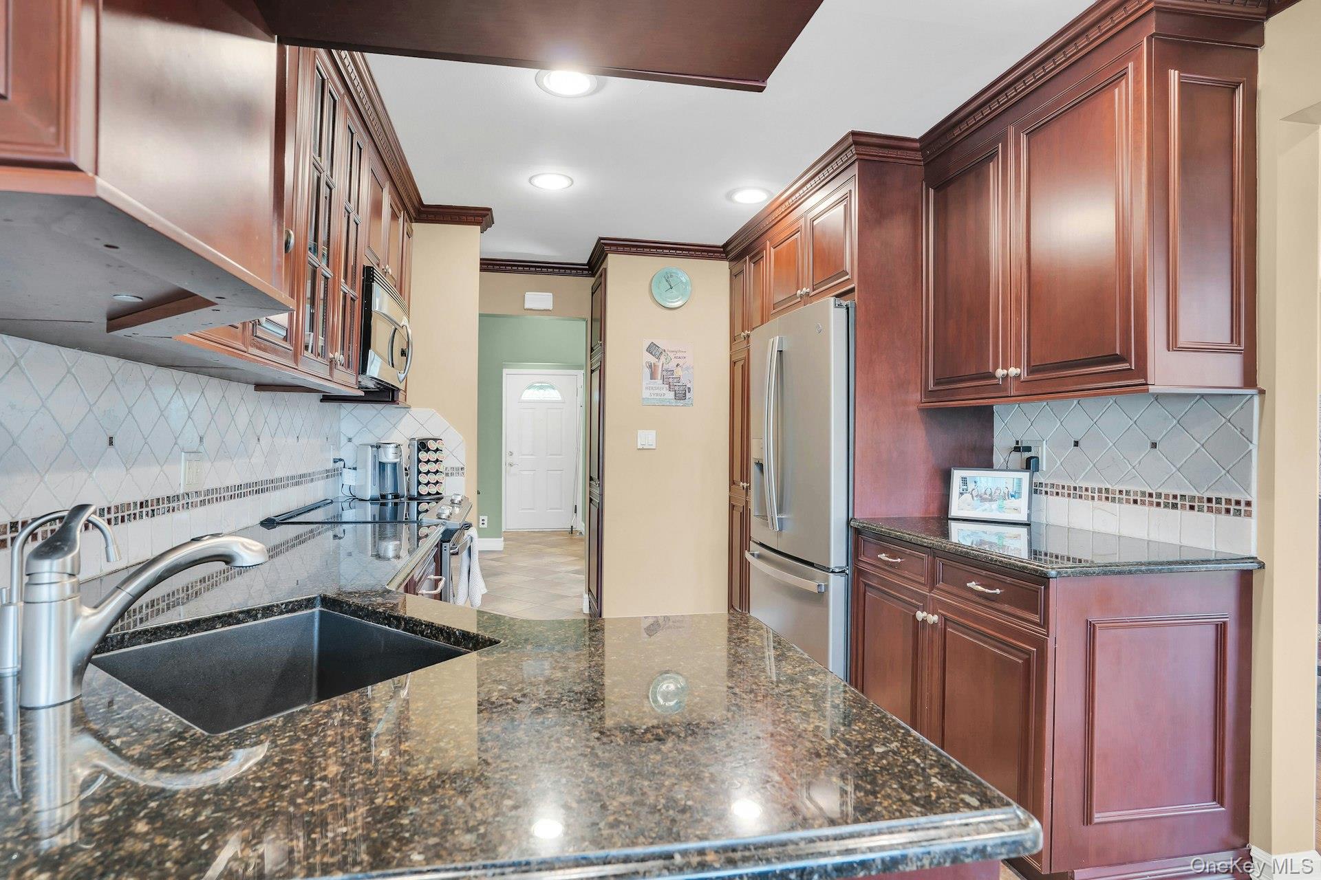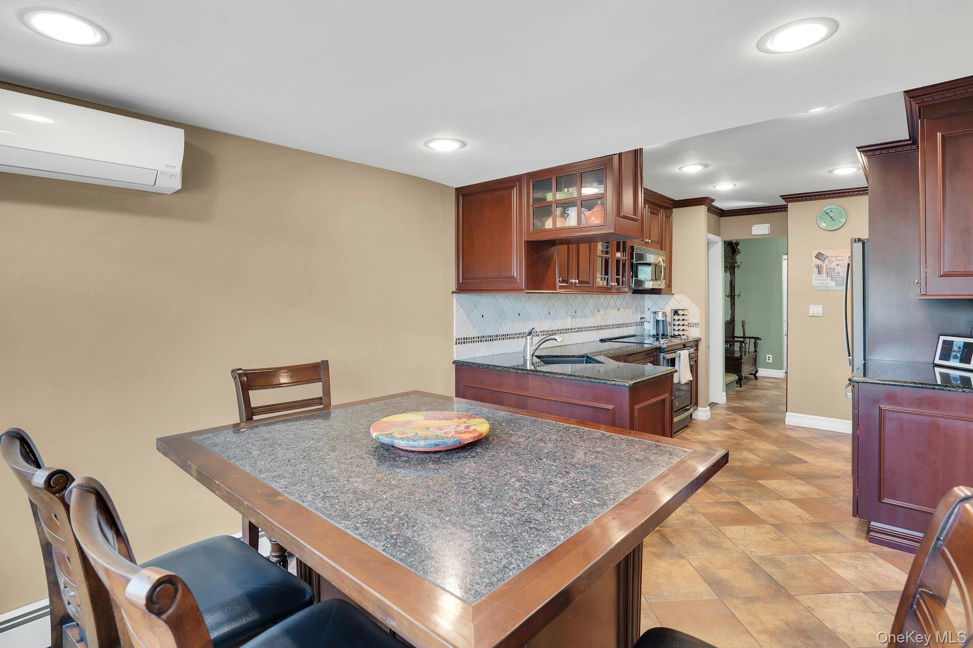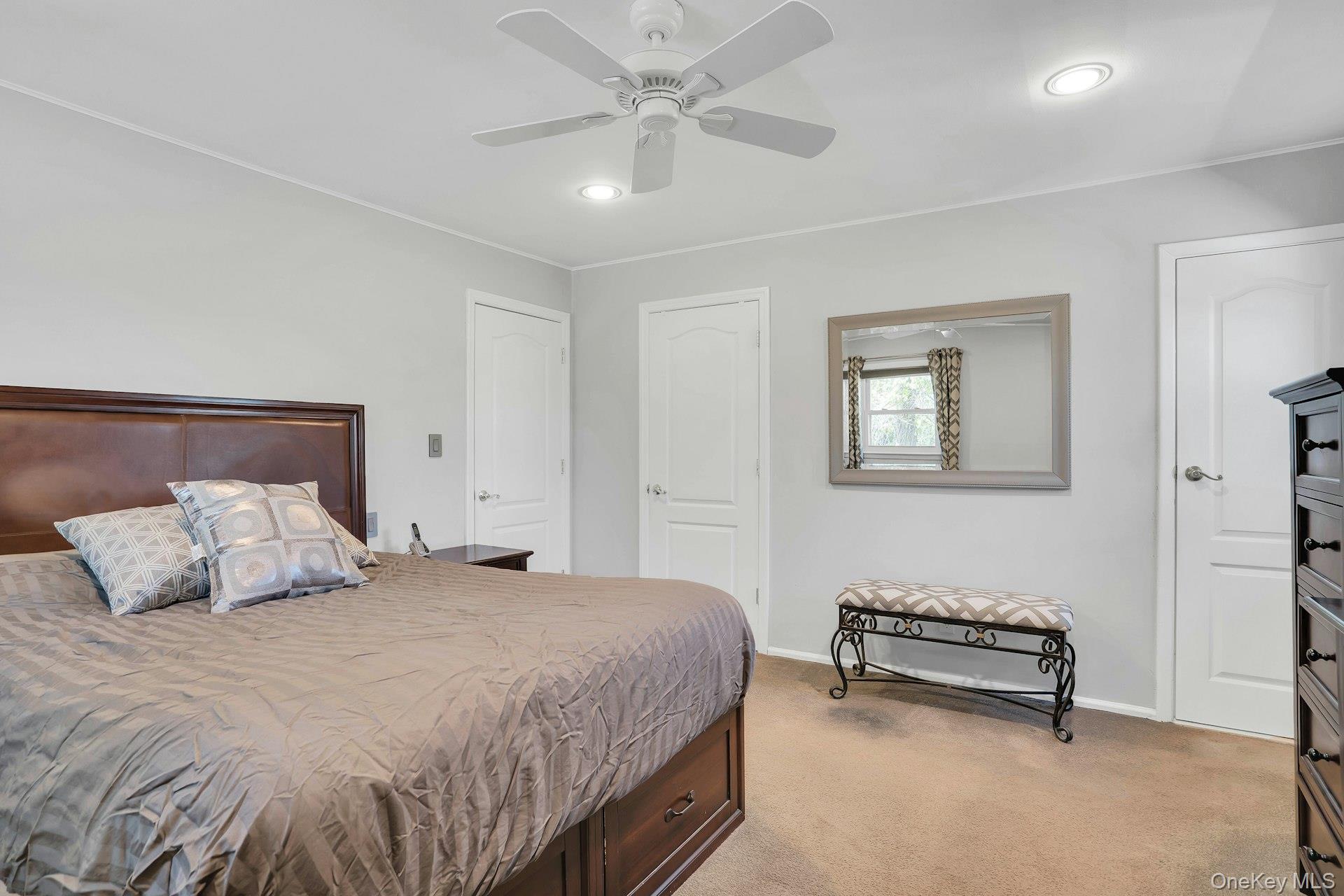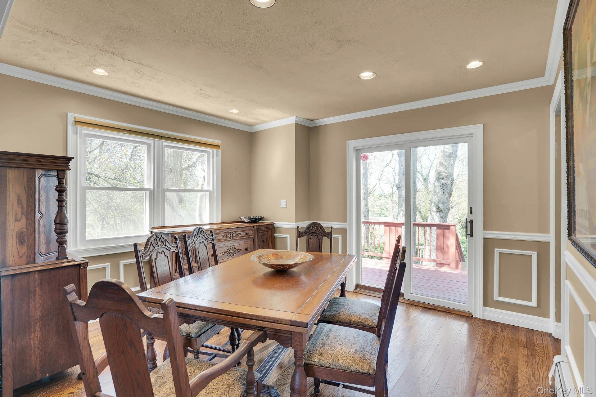 Fabulous location in the heart of Half Hollow Hills School District. This 4 bedroom, 2.5 bath split is so charming, set in the center of a private cul-de-sac. The driveway affords ample parking and there is a detached 1 car garage. The paver walkway leads you to a small covered porch. Enter the home and you are first greeted by a beautiful living room with vaulted ceilings and a skylight that drenches the room with natural light. There is a wood burning fireplace as the focal point, hardwood floors and the window treatments stay. The formal dining room flows from the living room for easy entertaining. From here you can use the sliding glass doors to entertain on the deck. The kitchen has been updated and features stainless appliances. The GE refrigerator is 3 years old and the GE stove is 5 years old. The dishwasher is Bosch. The table is situated in front of the windows for a great view of the yard. The 2nd floor features the primary bedroom with a private ensuite bathroom. There are two other bedrooms and an updated main bath on this floor. The lower level brings you to the bright family room with walls of windows all around. The wet bar is the star here! There is a half bath and an outside entrance to the yard that has a pretty built-in for storage and overflow entertaining. On this level is the 4th bedroom/office, which is quite roomy and has a separate outside entrance from the driveway for privacy. From the family room you continue down four more stairs to the basement area. Here you have a finished space for another playroom or office. The laundry room is here as well as a sauna room! There is ample storage and the utility closet. When you go to the yard from the dining room you step out to a deck overlooking the pool. When you go to the yard from the lower level you find yourself under a covered patio which is so nice for increment weather. The yard is professionally landscaped and designed to accomodate entertaining on all of the levels. The main deck to the back of the house is where a lot of the entertaining will be. Then you descend the stairs to find yourself at the pool oasis with a small shed that can be used as a pool house if needed. The pool is heated, chlorine, and the liner is 2 years old. It is very nice. Age of roof is unknown. There are 4 Split Systems for cooling. 2 on the main level, 1 in the bedroom and 1 in the basement. Boiler is oil - 2012, 3 zones. Hot Water Heater 2018. 200 Amp. Cesspool age unknown and pumped last year. Whole House Generac Generator.