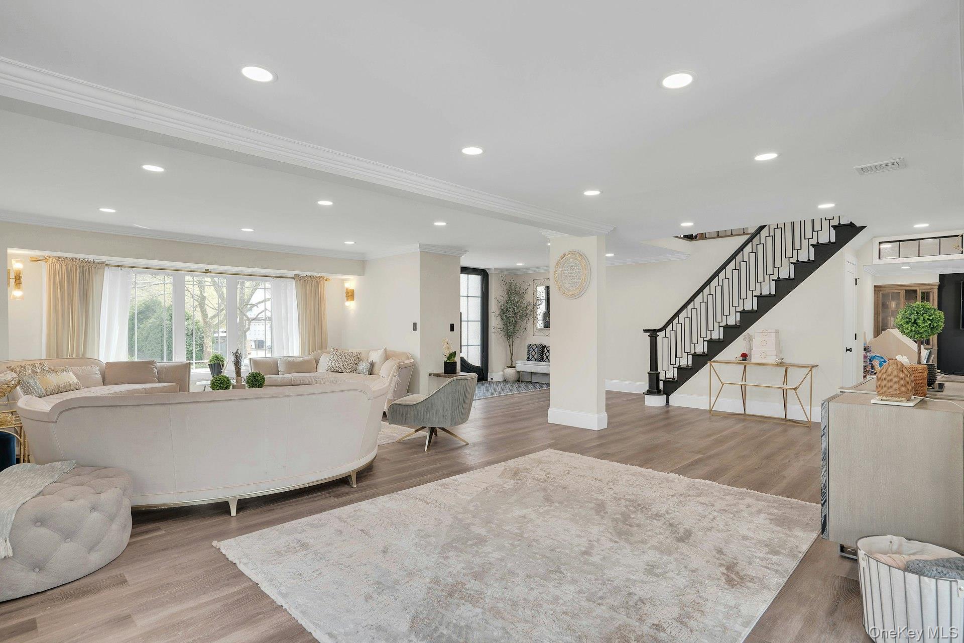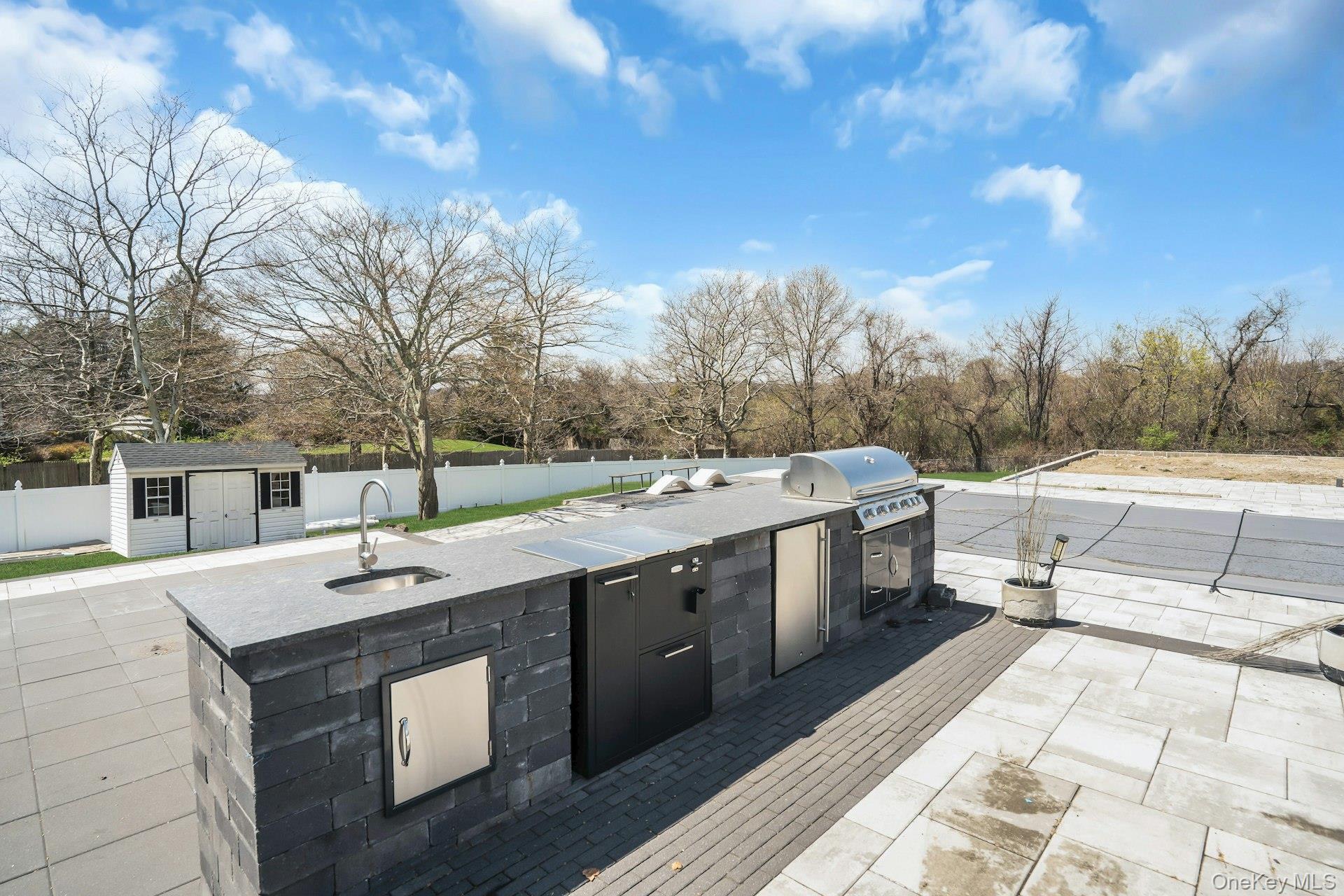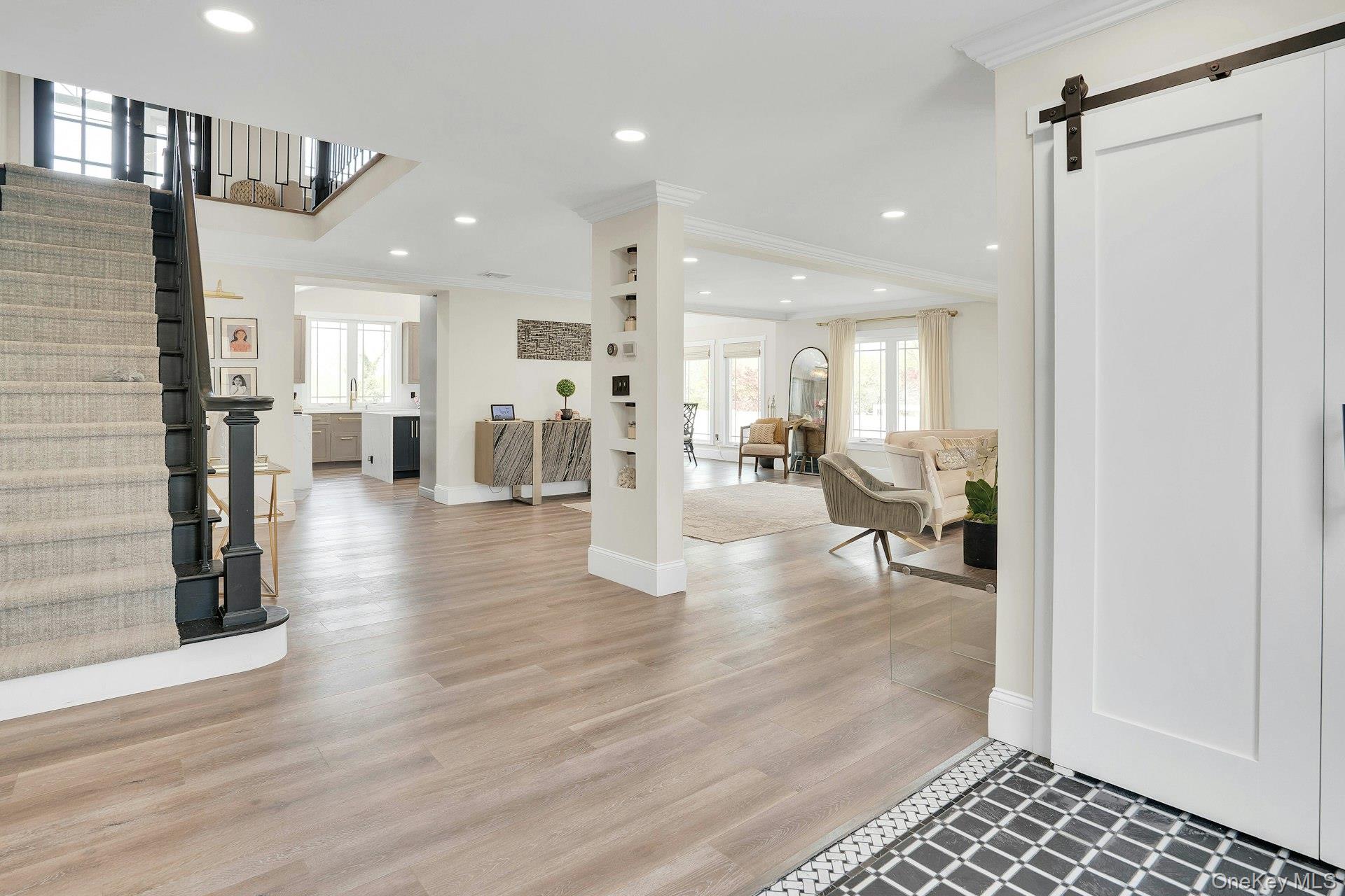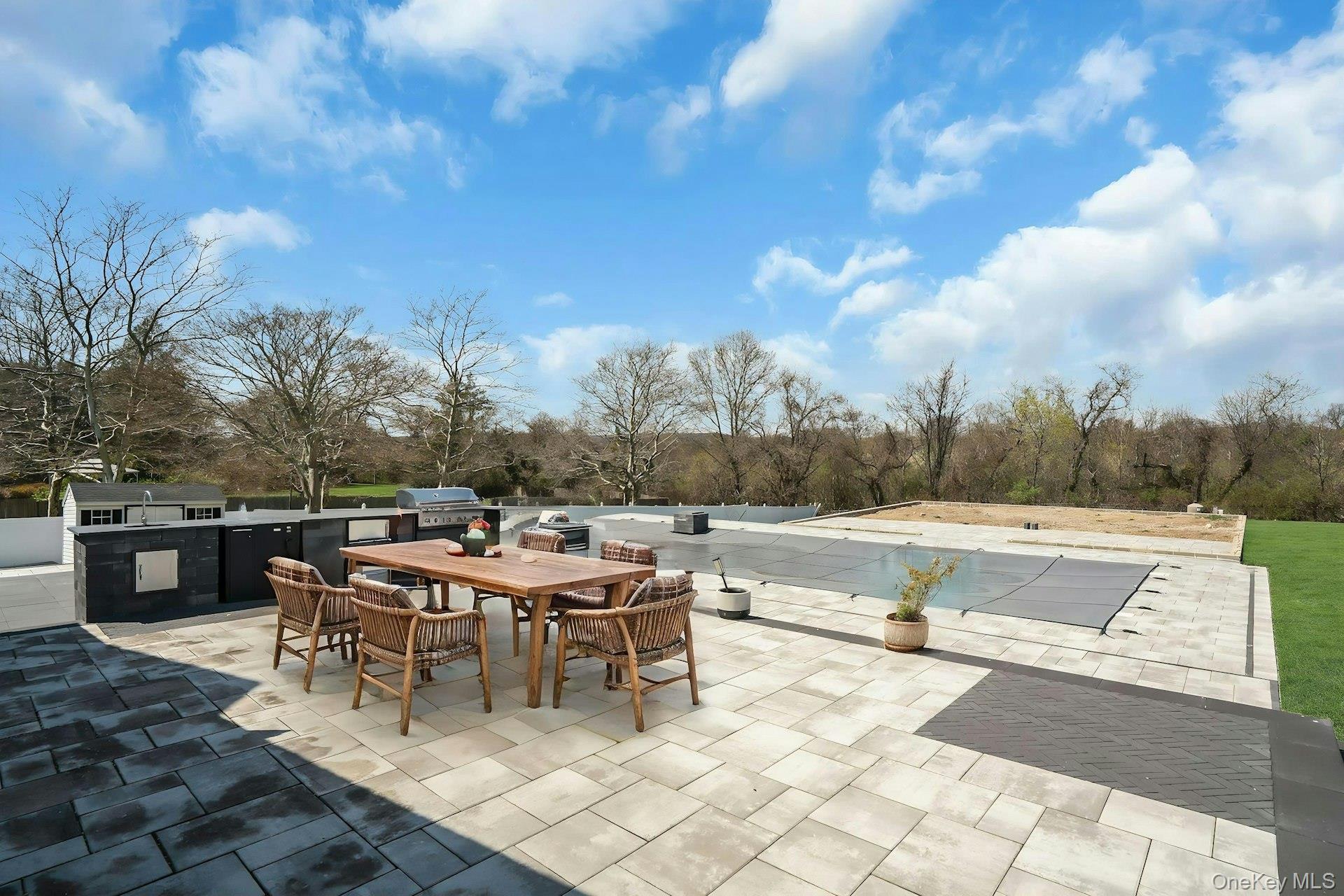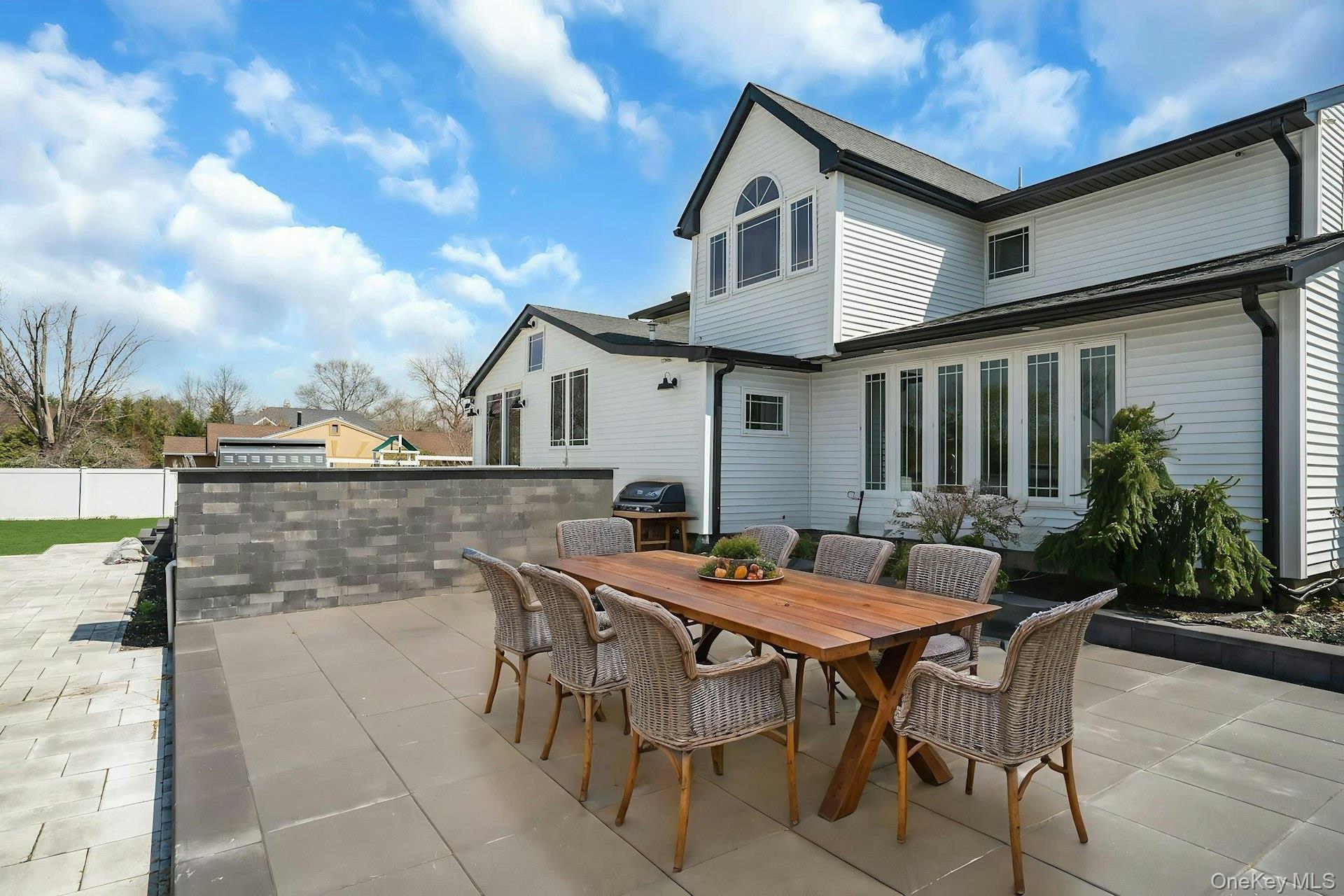 This is the one you have been waiting for! Location, location, fully updated in 2023! This stunning grand colonial with a circular driveway and pillars at the entrance, has a beautiful bluestone porch to greet you. The double entry doors are designer, black steel, show stoppers. Enter the foyer to a beautiful tiled floor with a double coat closet. Then step in to open concept living space that is exactly what you would wish for. The flooring here is Durvana and the entire first floor is radiant heated. The formal living room is drenched with natural light from the bay window. Plenty of space for entertaining. A dining table can be added to this space if needed. Step into the custom kitchen with high ceilings and windows and sliders all around. The cabinets are modern with glass doors, slow close drawers and a center island with a waterfall quartzite counter. All of the counters waterfall in this stunning kitchen! Of course there is a 6 Burner Wolf stove and oven, Sub-Zero Refrigerator, Microwave Drawer and Cove Dishwasher! My favorite room in the house is the PANTRY with a glass barn door! The pantry feautres a coffe bar and shelving, shelving, shelving! Such an Instagram moment! Love it! The family room is tucked away for a bit of privacy when needed. This room features a GAS fireplace and built-ins. It has a wall of the most beautiful Pella casement windows. Ascending the staircase to the 2nd floor, you reach the most inviting study with lovely windows overlooking the yard. You can work in this office all day! It has built-in bookcases and a desk. The stackable washing maching and dryer are also tucked in the corner so you never have to bring your laundry downstairs. Bonus! The primary bedroom feautures high ceilings and 2 large walk-in-closests for the clothes horse! The room also has a private ensuite bathroom with skylight. The other 3 bedrooms are all good sizes and the main bathroom with skylight has been updated too. The full basement is finished and has an outside entrance. The backyard has been professionally designed by the Stasi Brothers. There are multiple patios and an in-ground gunite pool with a vinyl liner all done in 2023. The pool has a sun deck for lounging in the water as well 2 waterfalls. The pool gradually goes to 6 feet and is gas heated and salt-water. There is a fabulous outdoor kitchen for those summer barbecues. There is also a $10,000 Wood Kingdom playground set up and ready to go. Roof 2022. Gas Boiler 2024. Air Conditioner 2025. Cesspool age not verified but it was pumped two years ago and is in good working order. 2 car garage is ready for the fancy car person. 200 Amp.