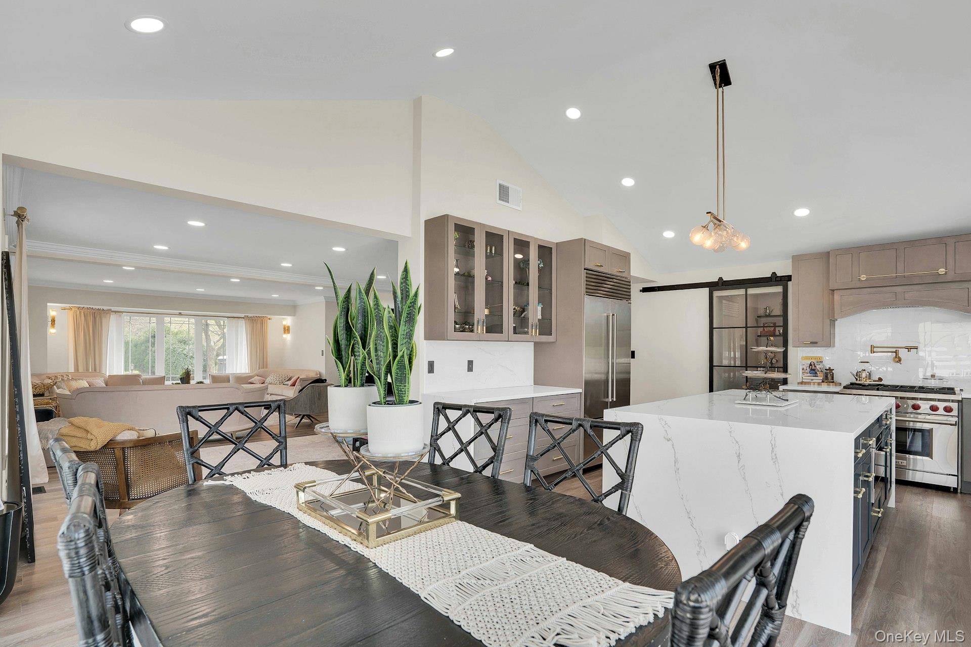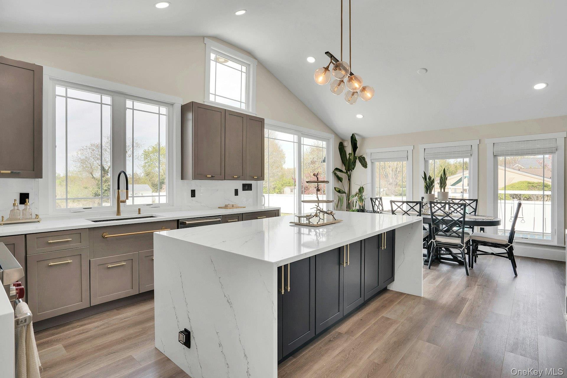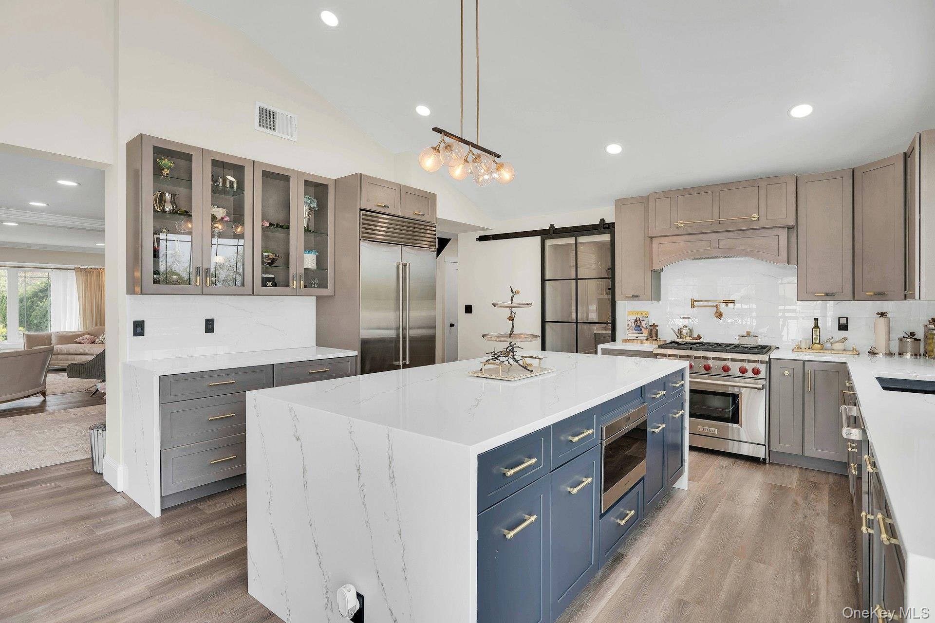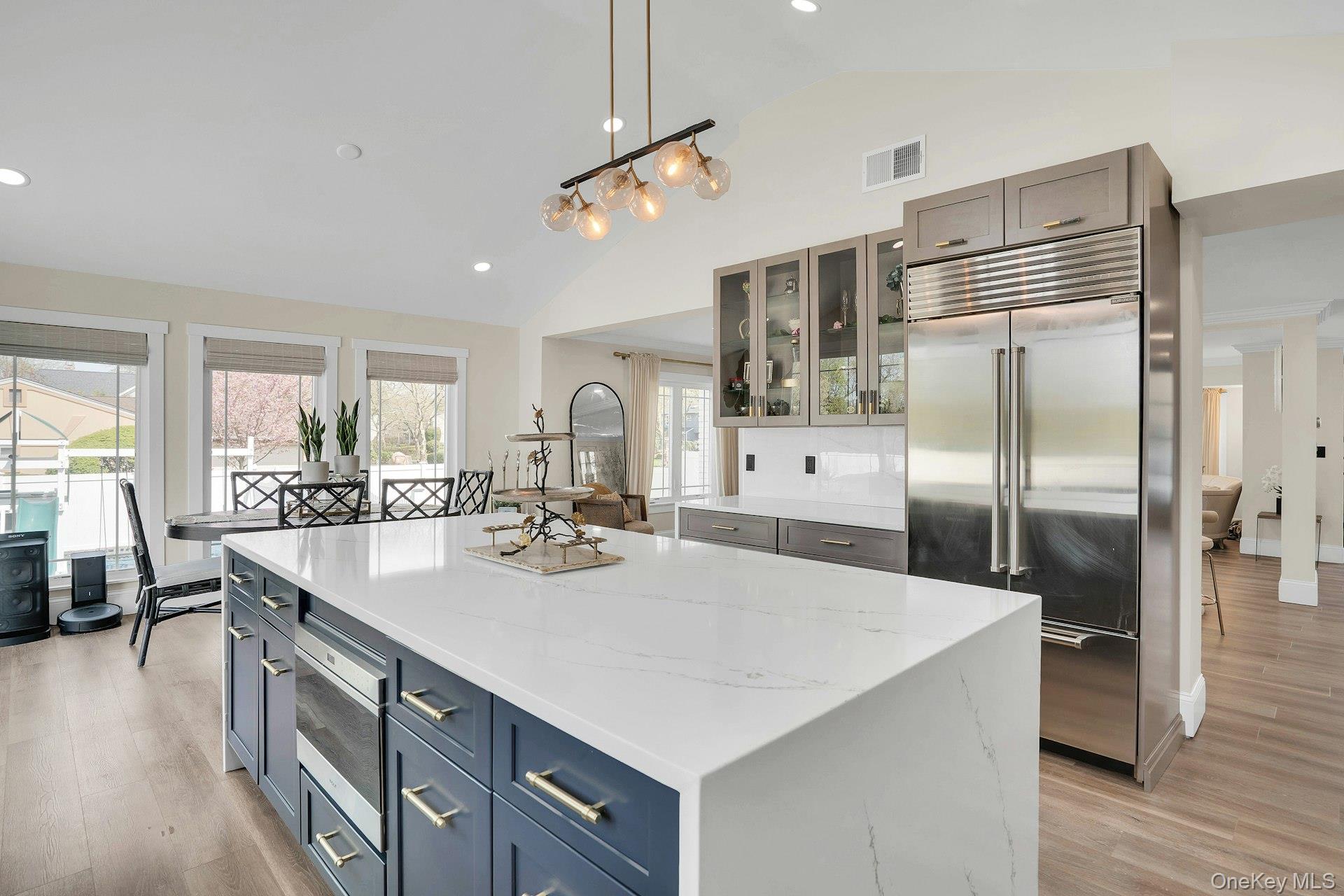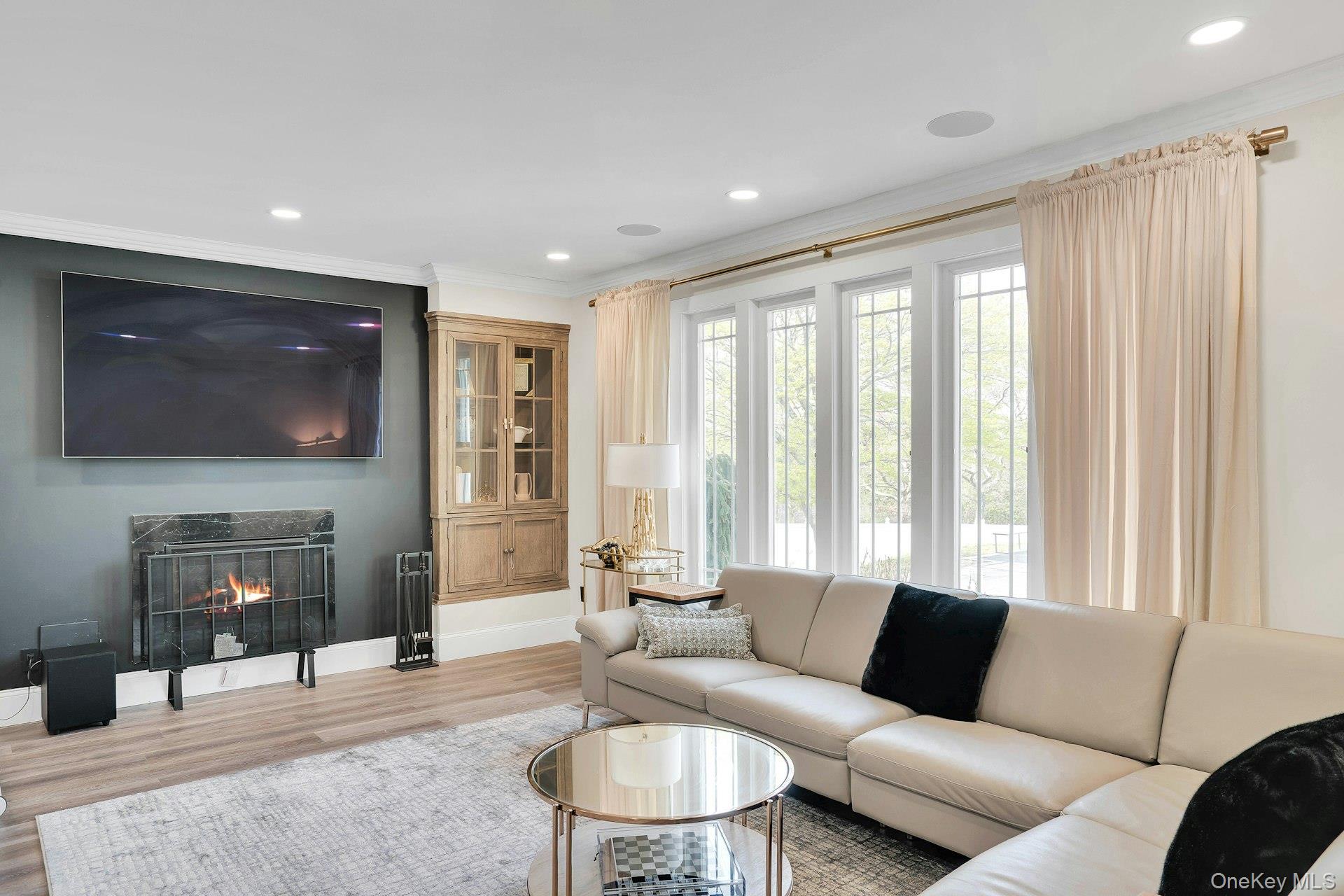 This is the one you have been waiting for! Location, location, fully updated in 2023! This stunning grand colonial with a circular driveway and pillars at the entrance, has a beautiful bluestone porch to greet you. The double entry doors are designer, black steel, show stoppers. Enter the foyer to a beautiful tiled floor with a double coat closet. Then step in to open concept living space that is exactly what you would wish for. The flooring here is Durvana and the entire first floor is radiant heated. The formal living room is drenched with natural light from the bay window. Plenty of space for entertaining. A dining table can be added to this space if needed. Step into the custom kitchen with high ceilings and windows and sliders all around. The cabinets are modern with glass doors, slow close drawers and a center island with a waterfall quartzite counter. All of the counters waterfall in this stunning kitchen! Of course there is a 6 Burner Wolf stove and oven, Sub-Zero Refrigerator, Microwave Drawer and Cove Dishwasher! My favorite room in the house is the PANTRY with a glass barn door! The pantry feautres a coffe bar and shelving, shelving, shelving! Such an Instagram moment! Love it! The family room is tucked away for a bit of privacy when needed. This room features a GAS fireplace and built-ins. It has a wall of the most beautiful Pella casement windows. Ascending the staircase to the 2nd floor, you reach the most inviting study with lovely windows overlooking the yard. You can work in this office all day! It has built-in bookcases and a desk. The stackable washing maching and dryer are also tucked in the corner so you never have to bring your laundry downstairs. Bonus! The primary bedroom feautures high ceilings and 2 large walk-in-closests for the clothes horse! The room also has a private ensuite bathroom with skylight. The other 3 bedrooms are all good sizes and the main bathroom with skylight has been updated too. The full basement is finished and has an outside entrance. The backyard has been professionally designed by the Stasi Brothers. There are multiple patios and an in-ground gunite pool with a vinyl liner all done in 2023. The pool has a sun deck for lounging in the water as well 2 waterfalls. The pool gradually goes to 6 feet and is gas heated and salt-water. There is a fabulous outdoor kitchen for those summer barbecues. There is also a $10,000 Wood Kingdom playground set up and ready to go. Roof 2022. Gas Boiler 2024. Air Conditioner 2025. Cesspool age not verified but it was pumped two years ago and is in good working order. 2 car garage is ready for the fancy car person. 200 Amp.