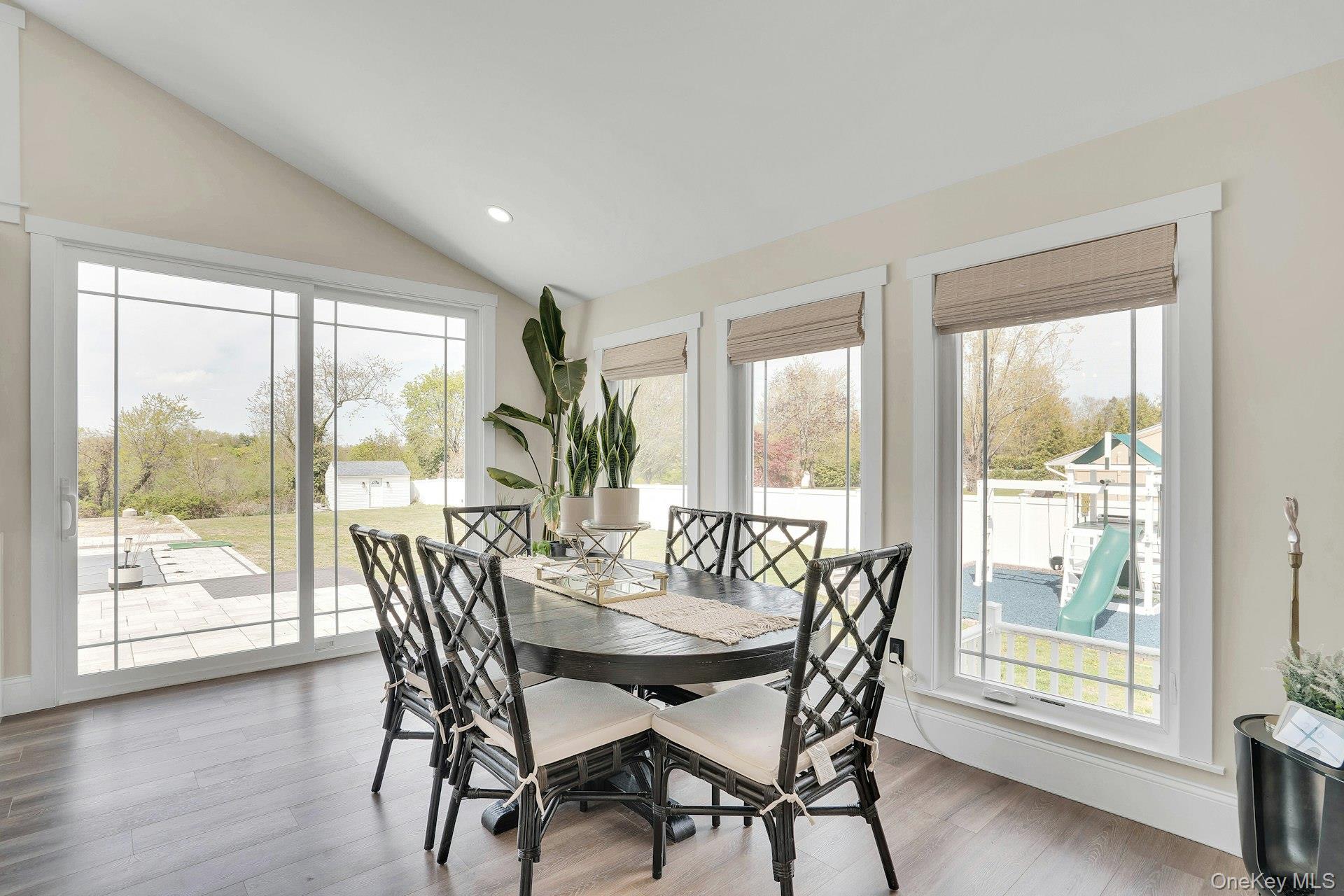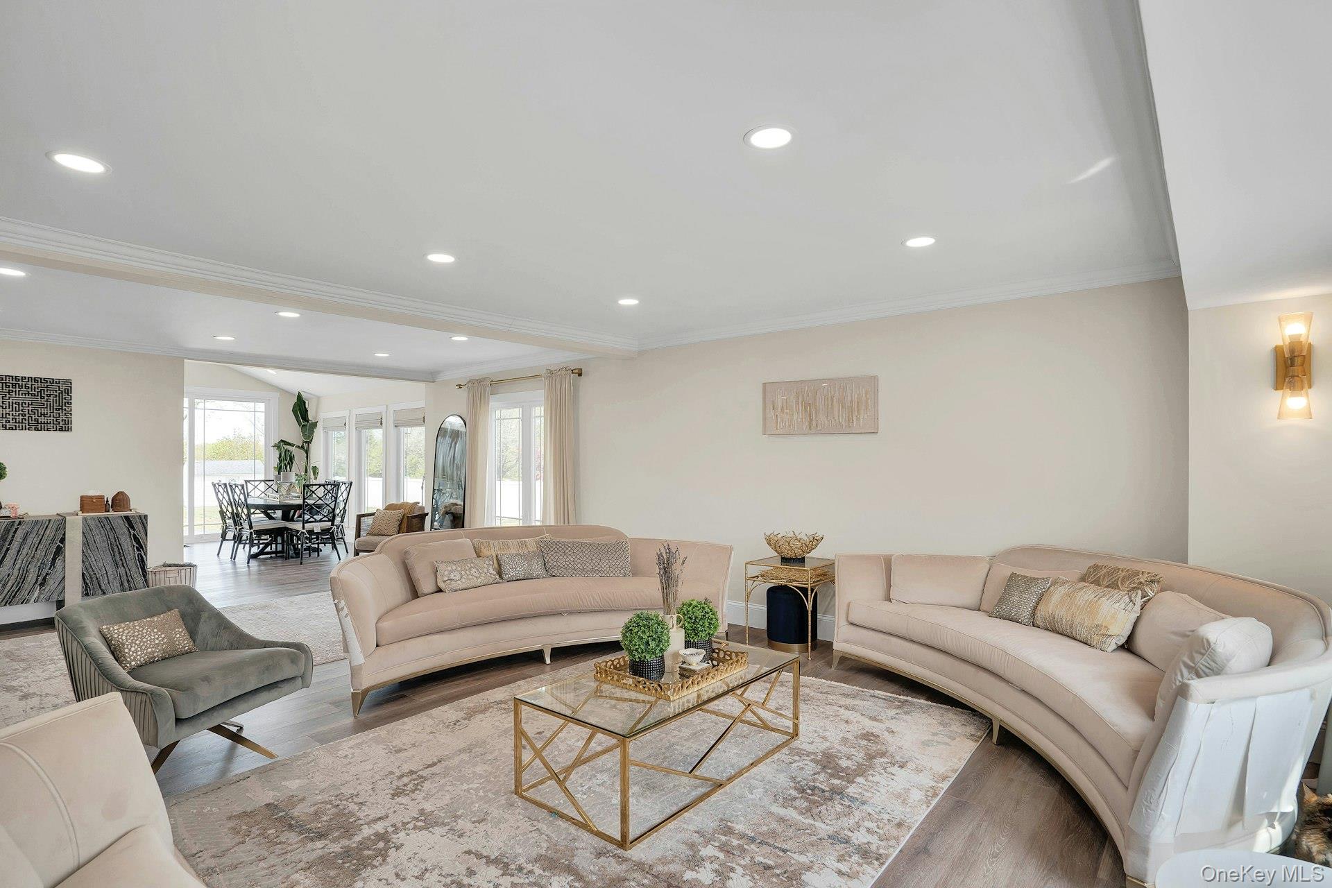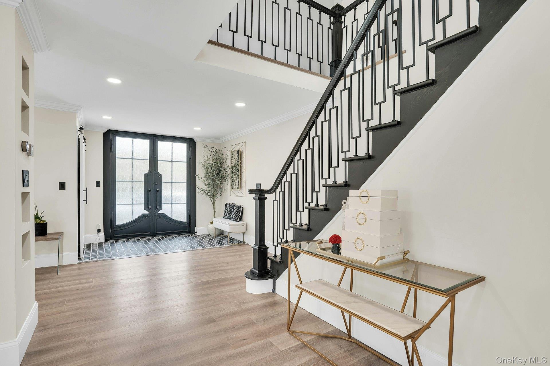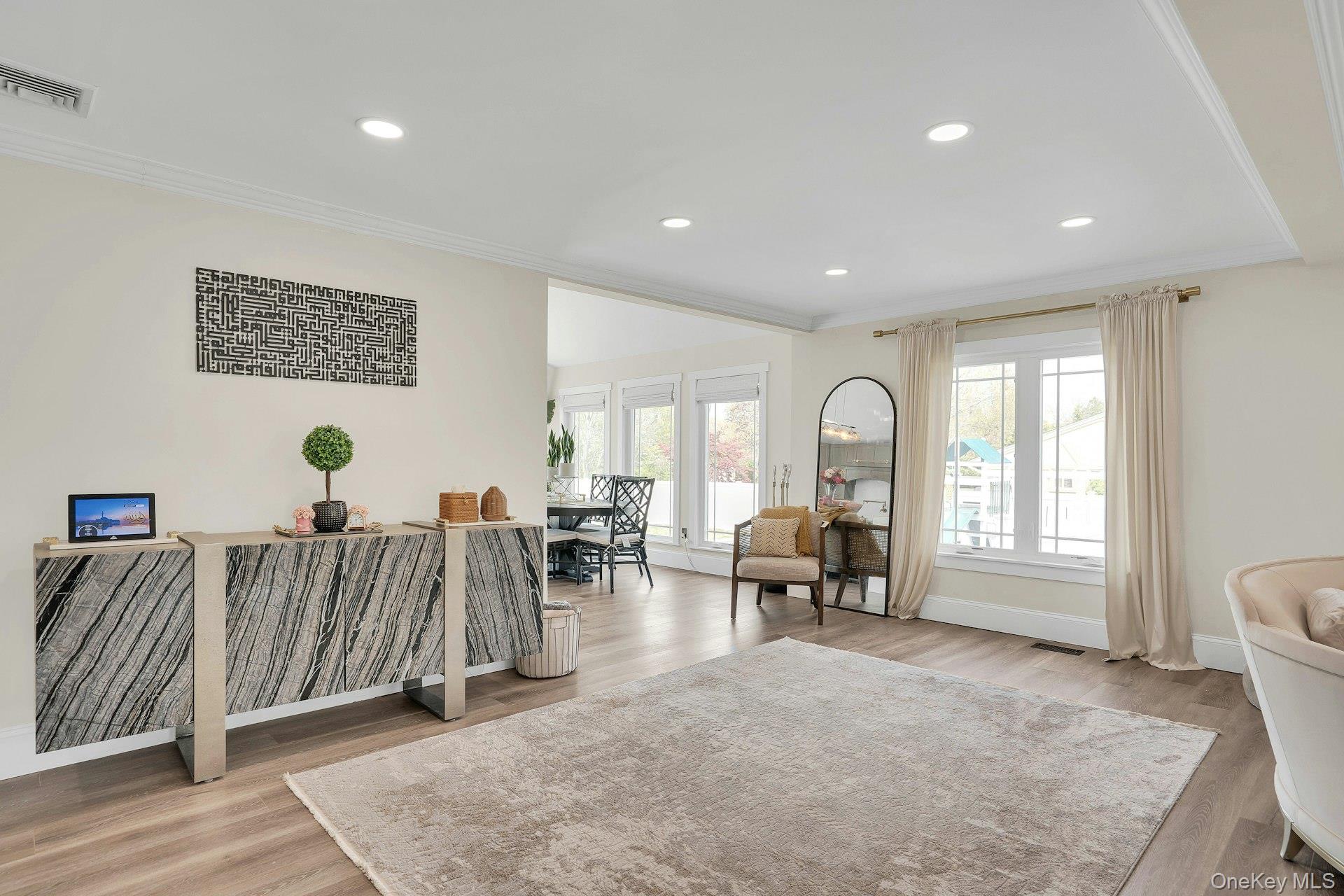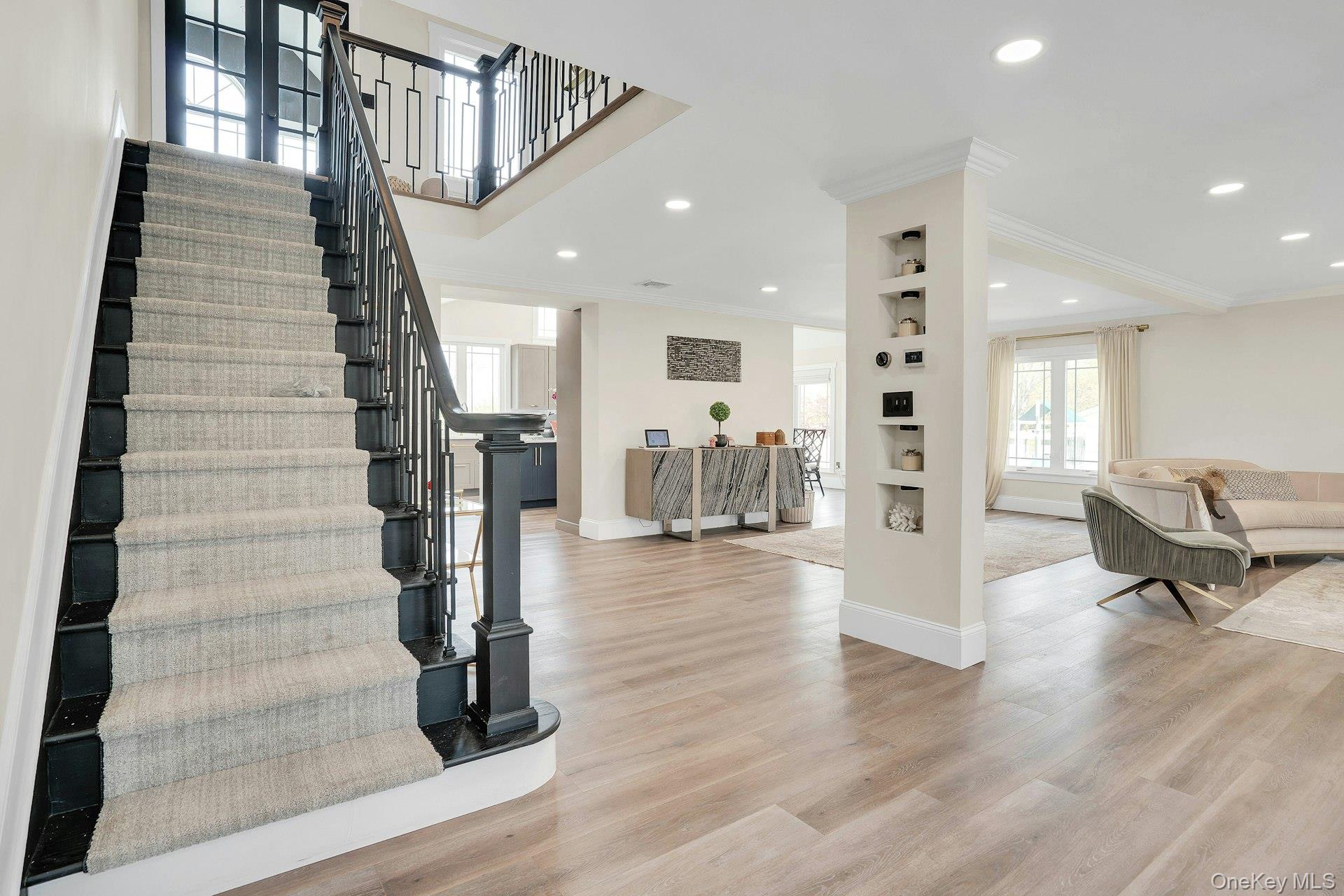 This is the one you have been waiting for! Location, location, fully updated in 2023! This stunning grand colonial with a circular driveway and pillars at the entrance, has a beautiful bluestone porch to greet you. The double entry doors are designer, black steel, show stoppers. Enter the foyer to a beautiful tiled floor with a double coat closet. Then step in to open concept living space that is exactly what you would wish for. The flooring here is Durvana and the entire first floor is radiant heated. The formal living room is drenched with natural light from the bay window. Plenty of space for entertaining. A dining table can be added to this space if needed. Step into the custom kitchen with high ceilings and windows and sliders all around. The cabinets are modern with glass doors, slow close drawers and a center island with a waterfall quartzite counter. All of the counters waterfall in this stunning kitchen! Of course there is a 6 Burner Wolf stove and oven, Sub-Zero Refrigerator, Microwave Drawer and Cove Dishwasher! My favorite room in the house is the PANTRY with a glass barn door! The pantry feautres a coffe bar and shelving, shelving, shelving! Such an Instagram moment! Love it! The family room is tucked away for a bit of privacy when needed. This room features a GAS fireplace and built-ins. It has a wall of the most beautiful Pella casement windows. Ascending the staircase to the 2nd floor, you reach the most inviting study with lovely windows overlooking the yard. You can work in this office all day! It has built-in bookcases and a desk. The stackable washing maching and dryer are also tucked in the corner so you never have to bring your laundry downstairs. Bonus! The primary bedroom feautures high ceilings and 2 large walk-in-closests for the clothes horse! The room also has a private ensuite bathroom with skylight. The other 3 bedrooms are all good sizes and the main bathroom with skylight has been updated too. The full basement is finished and has an outside entrance. The backyard has been professionally designed by the Stasi Brothers. There are multiple patios and an in-ground gunite pool with a vinyl liner all done in 2023. The pool has a sun deck for lounging in the water as well 2 waterfalls. The pool gradually goes to 6 feet and is gas heated and salt-water. There is a fabulous outdoor kitchen for those summer barbecues. There is also a $10,000 Wood Kingdom playground set up and ready to go. Roof 2022. Gas Boiler 2024. Air Conditioner 2025. Cesspool age not verified but it was pumped two years ago and is in good working order. 2 car garage is ready for the fancy car person. 200 Amp.