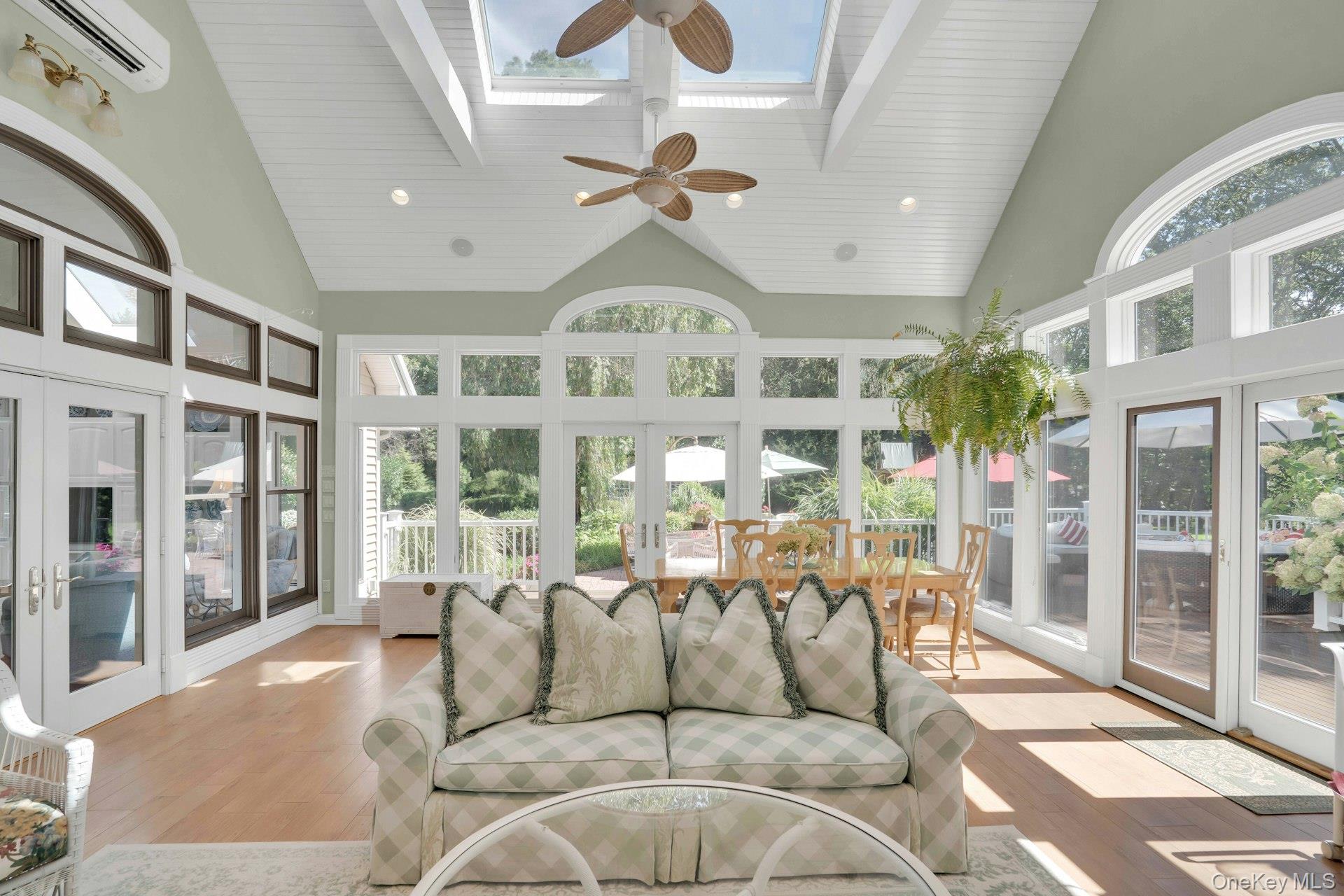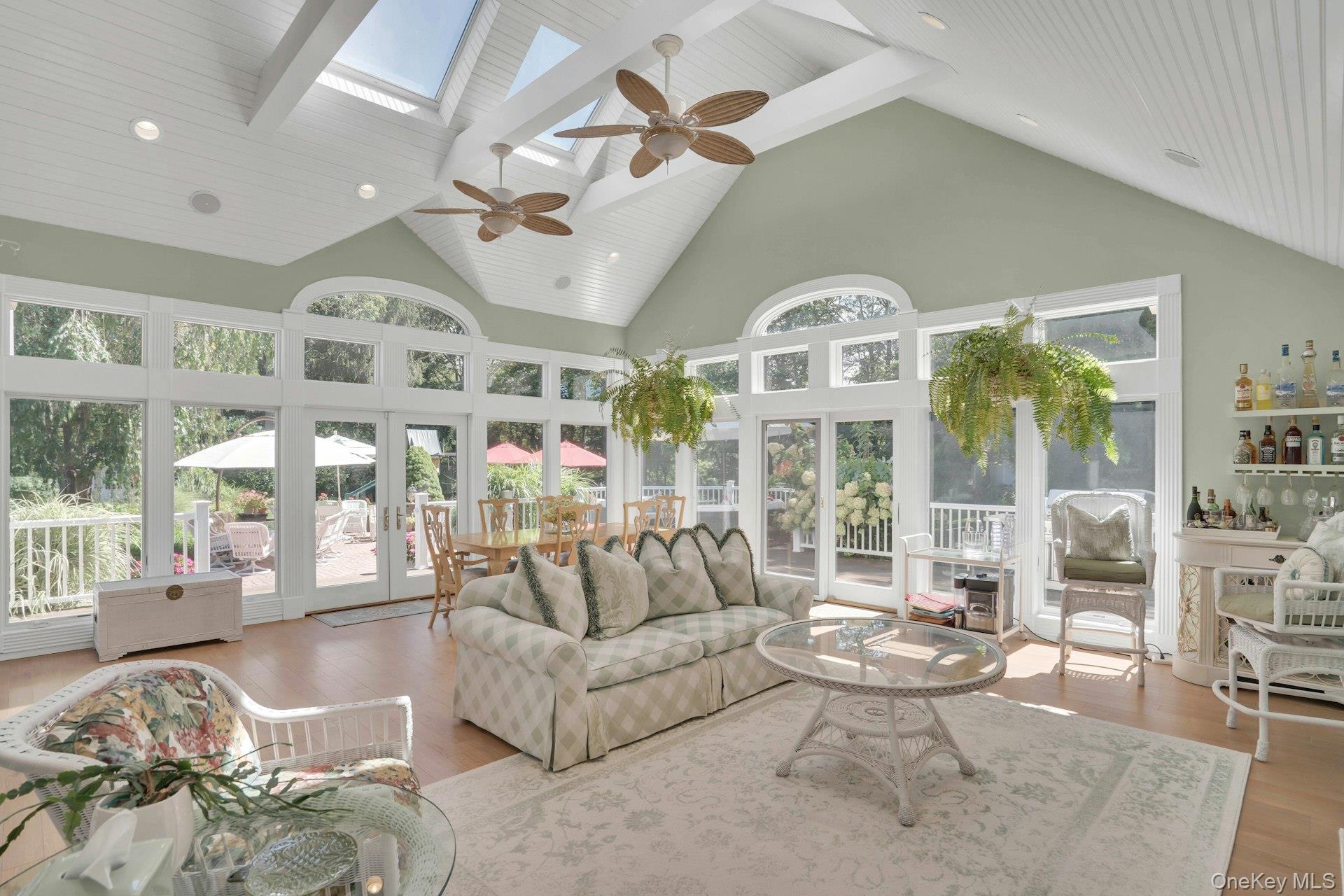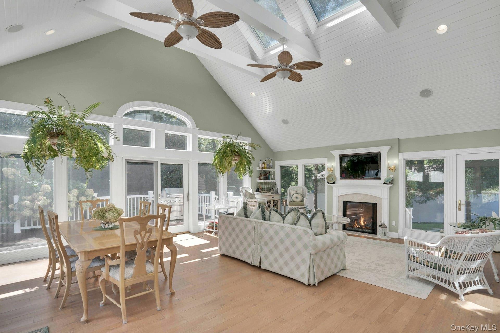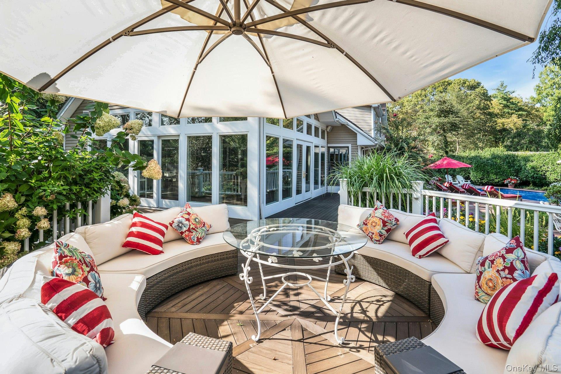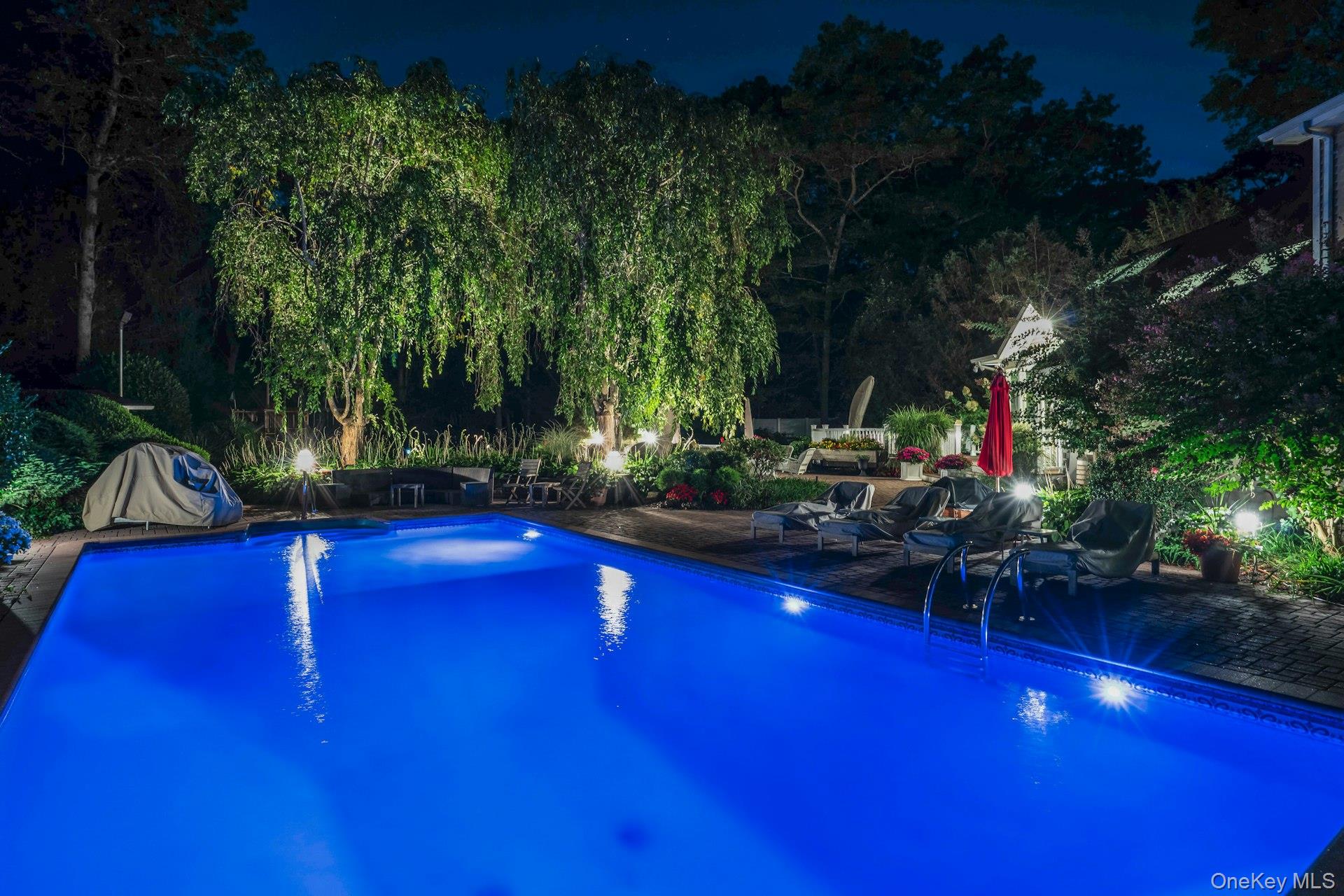 Set on an acre of land and professionally landscaped with specimen trees, bushes and flowers, this is the perfect setting for your next gathering. Step out of the sunroom onto the IPE wood deck overlooking the pool and the rolling lawns. Truly your own paradise. Go for a swim in the heated pool or play croquet on the lawn.