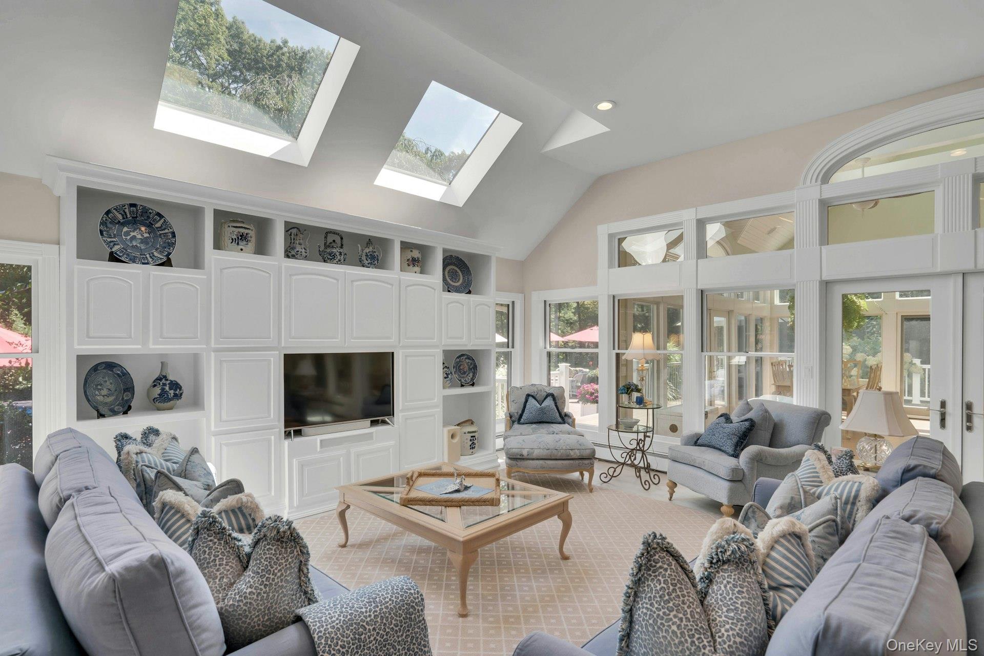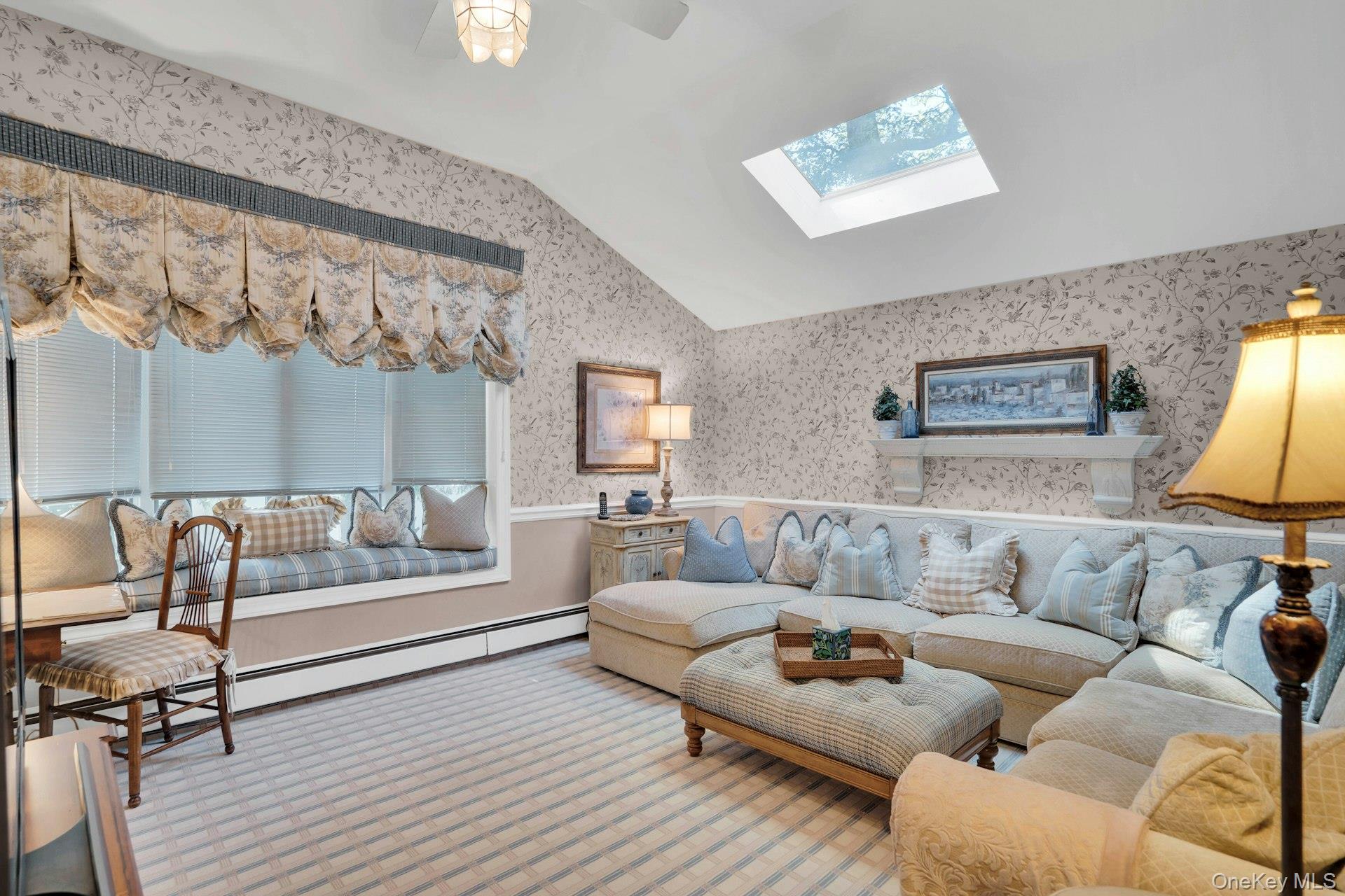 5000 square feet including basement, Boiler 2018 - 8 Zones of heating, House was converted to gas in 2015. CAC 5 zones - 5 units, two of them from 2018. Split System in sunroom 2018, Cesspool 20 years - Cement Cast with Overflows, 150 AMP, 13 Skylights, Radiant flooring in primary bathroom and sunroom, Wood burning fireplace in the den and gas fireplace in sunroom. Attic access on 2nd floor for air handler and 20x30 attic over the Great Room for storage.