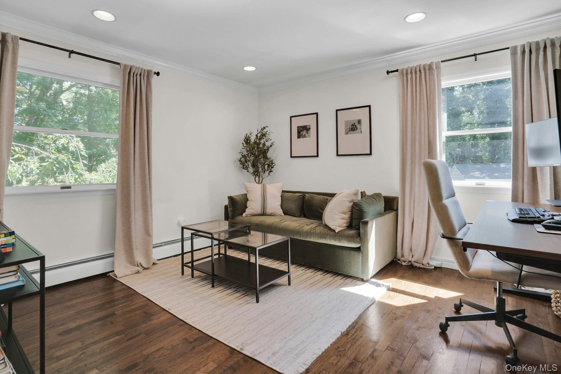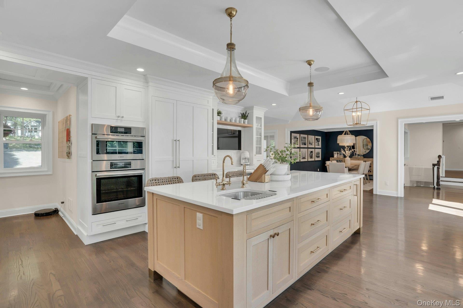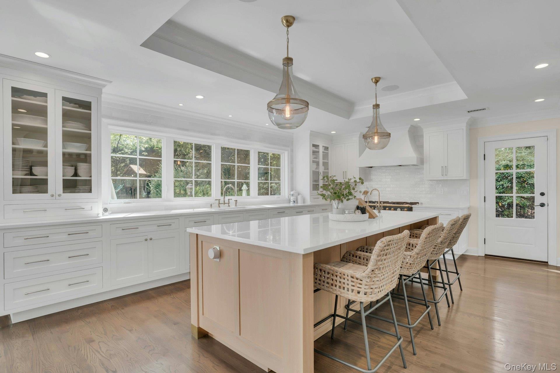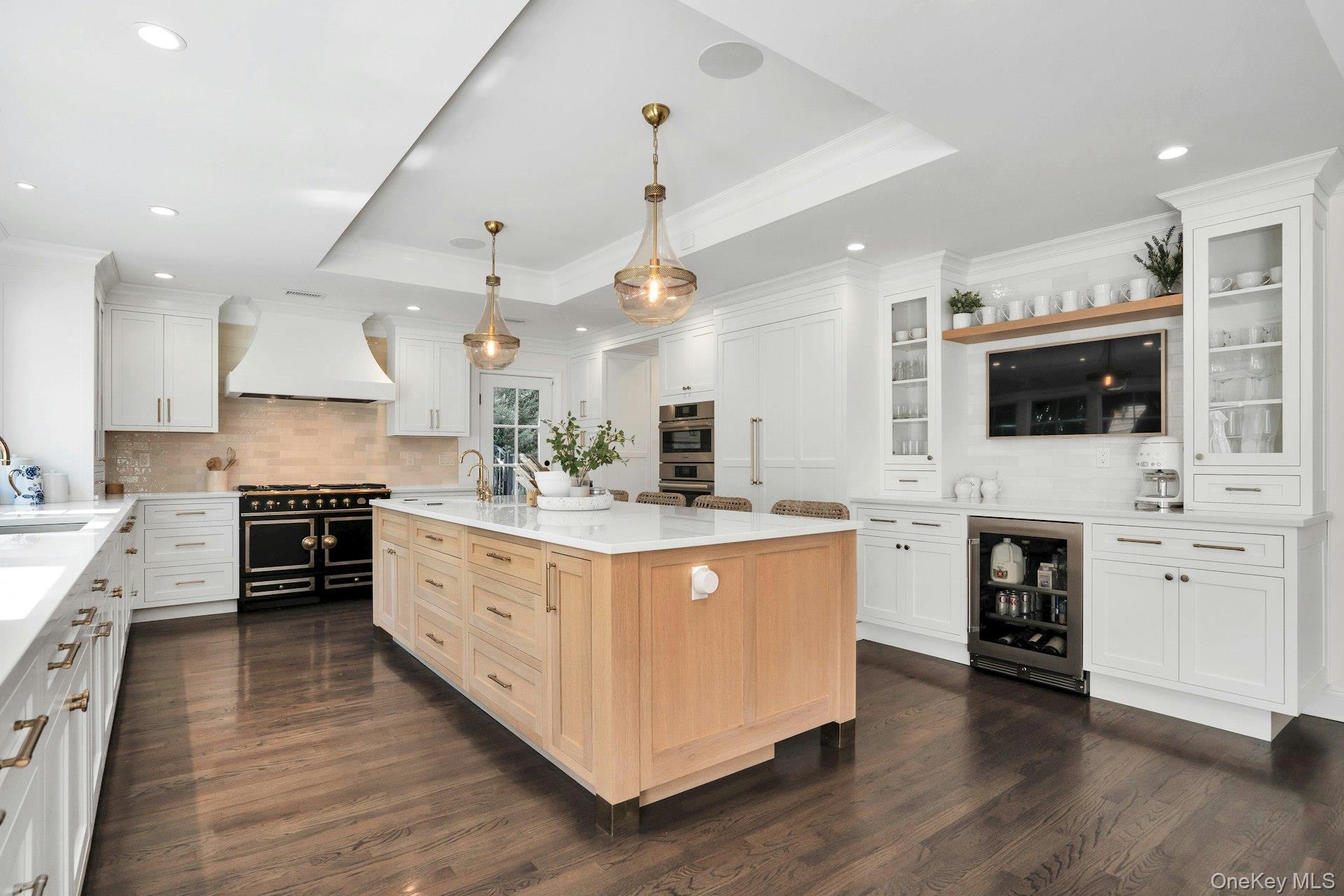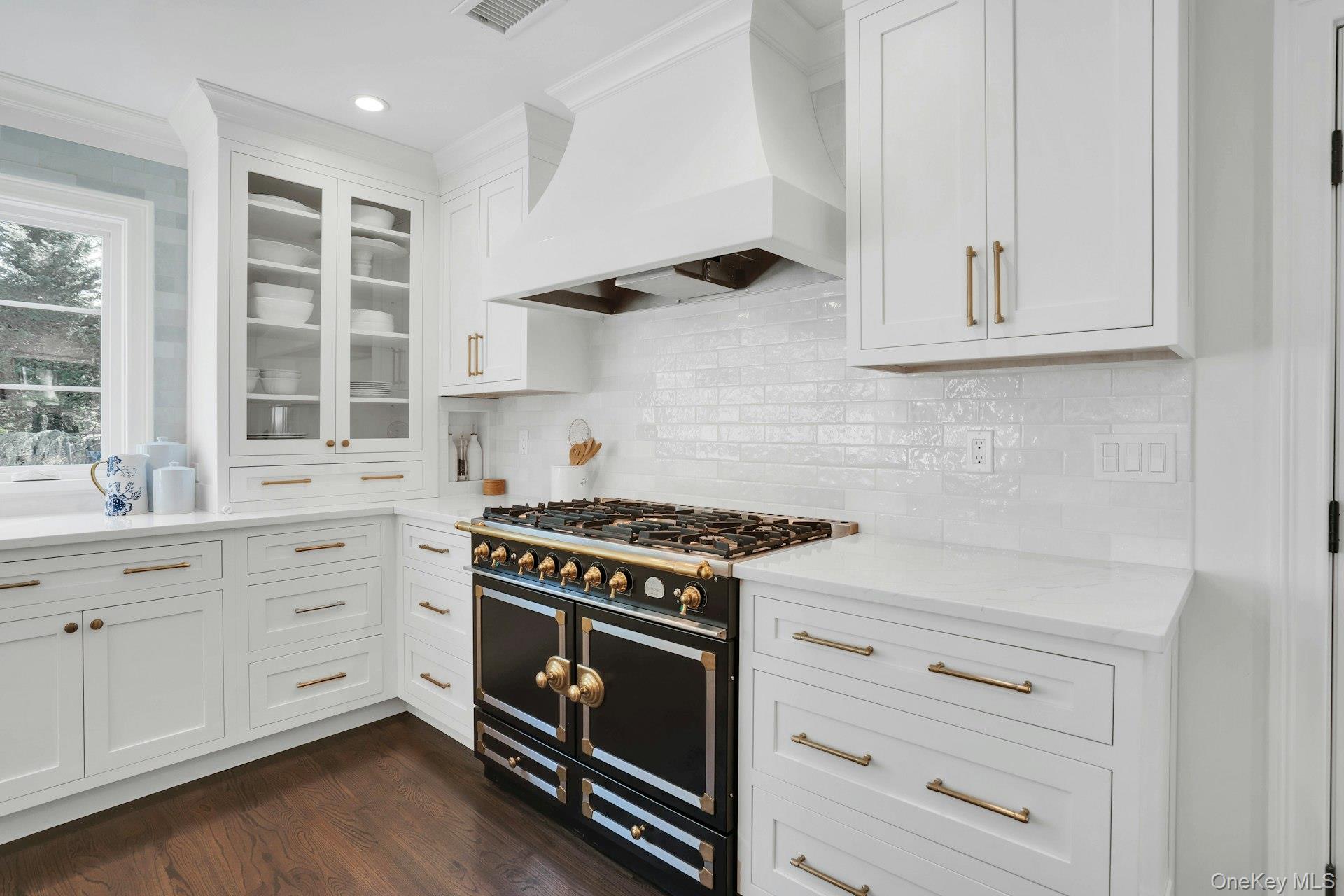 Inside, you'll find hardwood floors with a rich walnut stain, spacious living areas, and a gorgeous 5 year old chef's kitchen with custom cabinetry, a large center island, quartz countertops, a La Cornue stove (like Joanna Gaines!), Bosch appliances and a fabulous pantry -- perfect for entertaining and everyday living. The open dining and living spaces are filled with natural light and flow seamlessly for gatherings both large and small. The beautiful office with French door and picture window is the perfect setting to get your work done in.