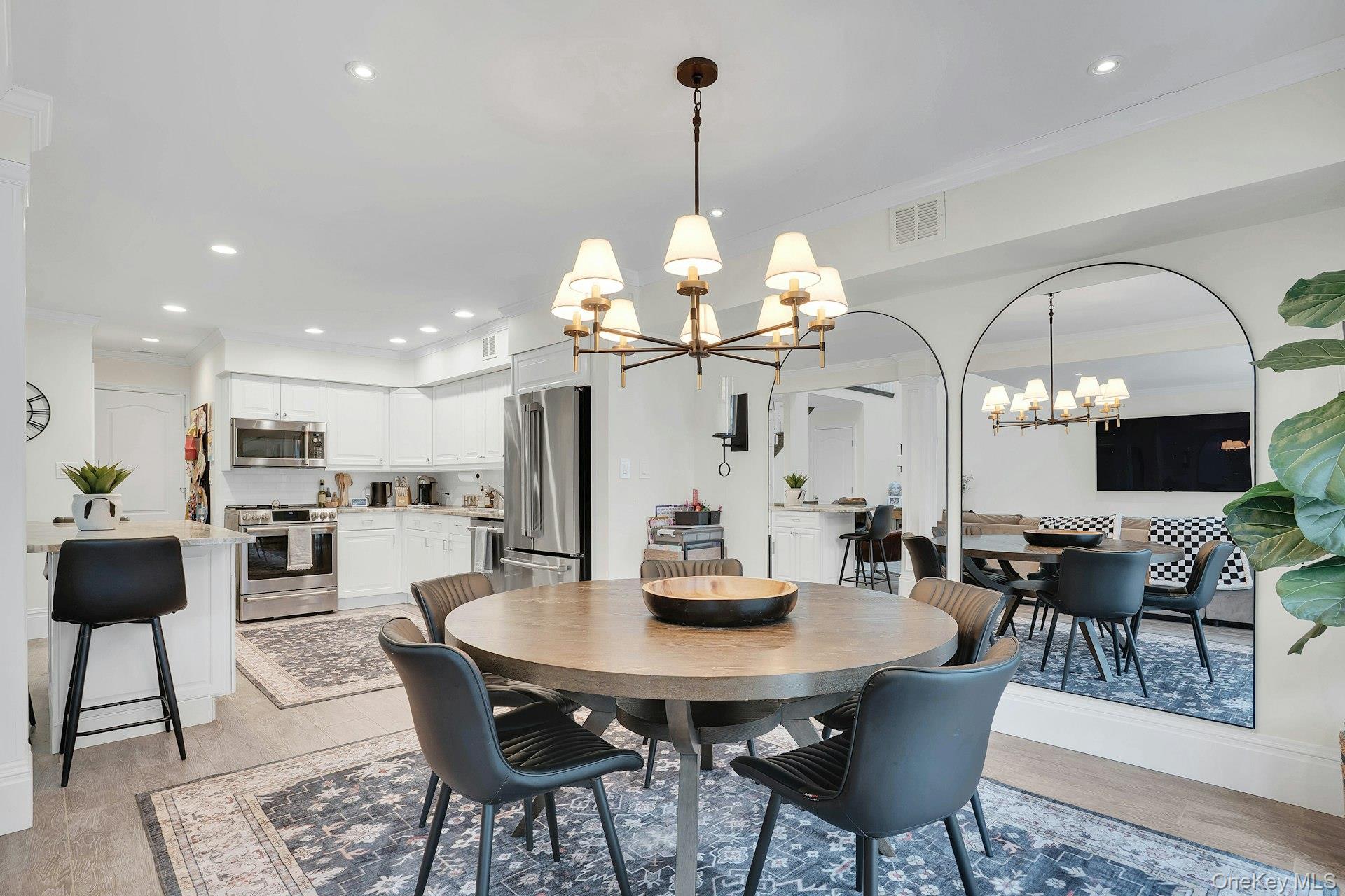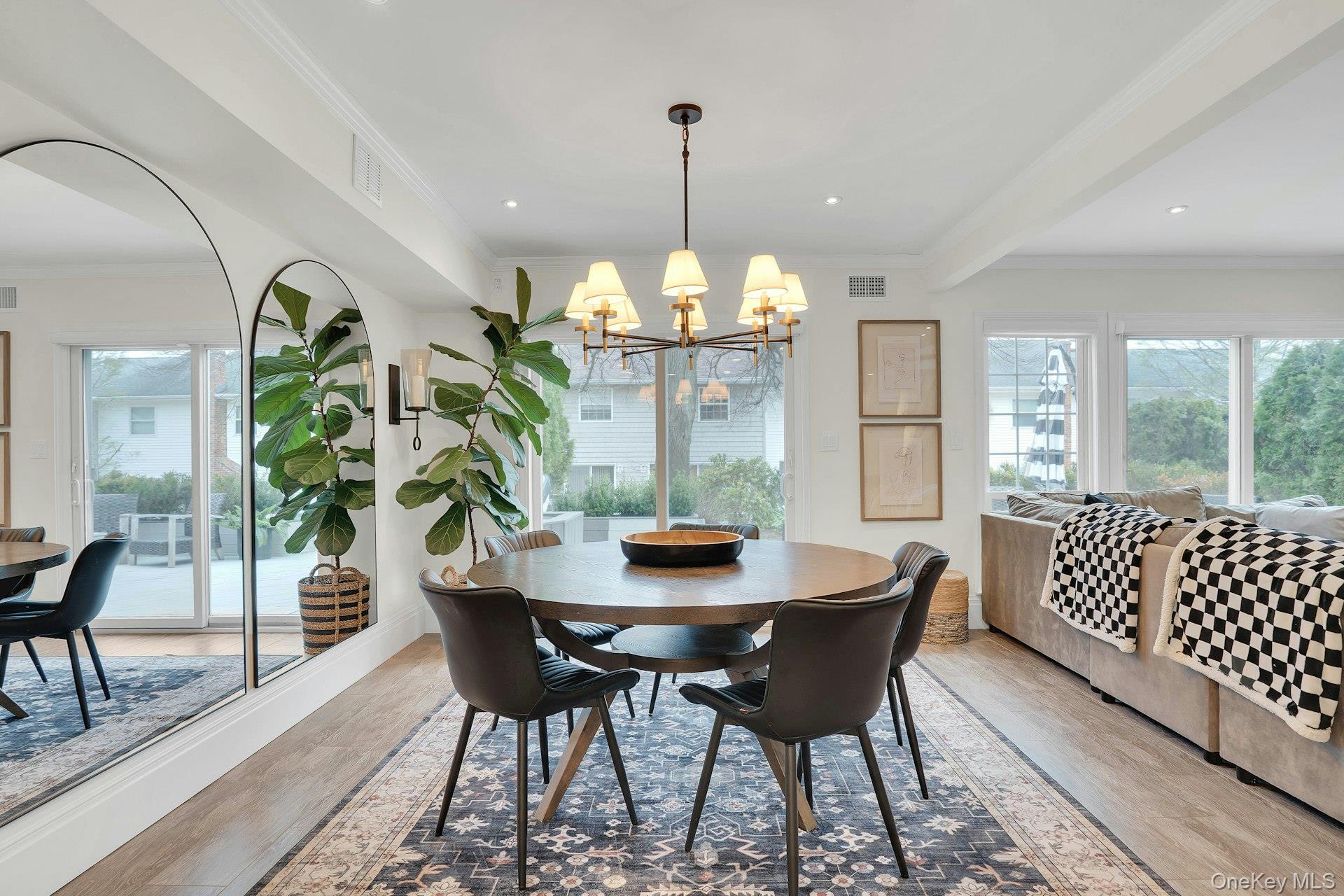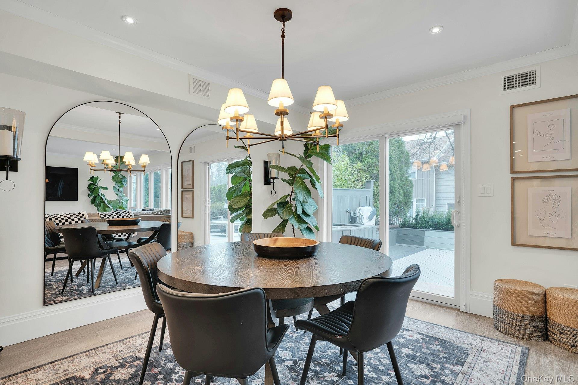 The sun-filled dining area flows seamlessly to a private outdoor setting, creating the perfect space for relaxing or entertaining. The generously sized primary suite offers a thoughtful layout, privacy, and ample storage.