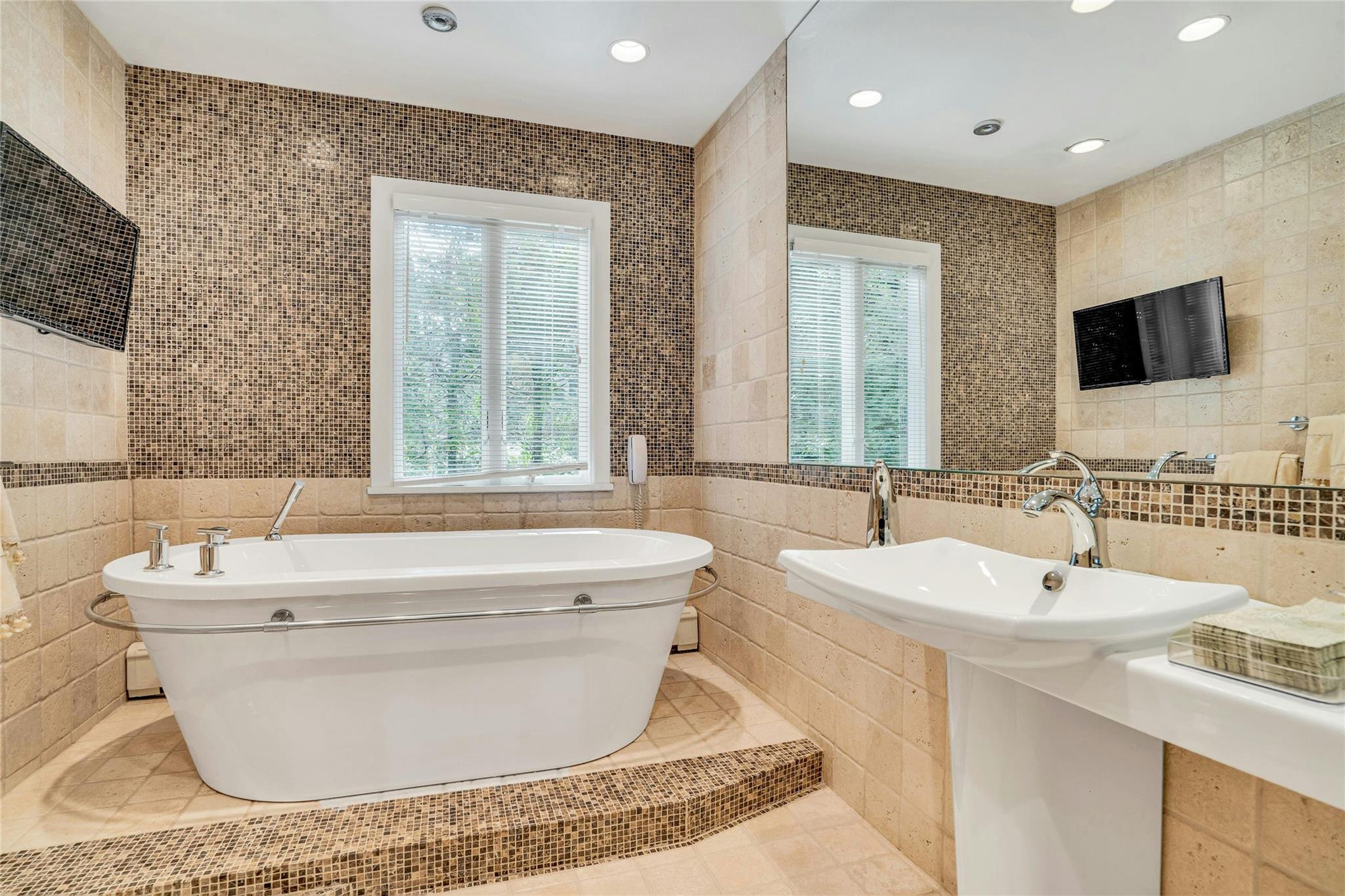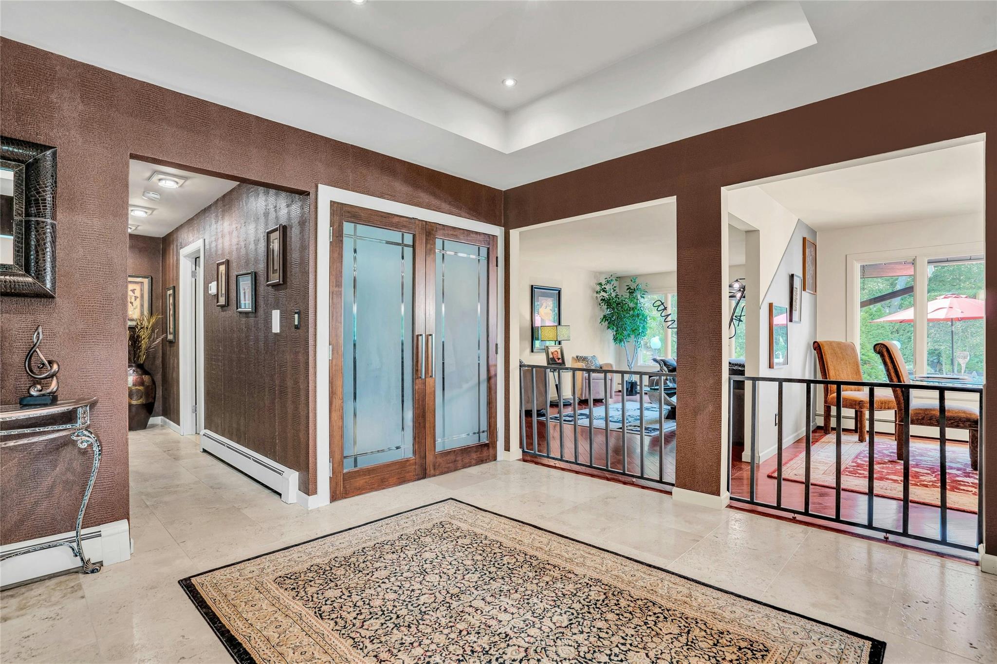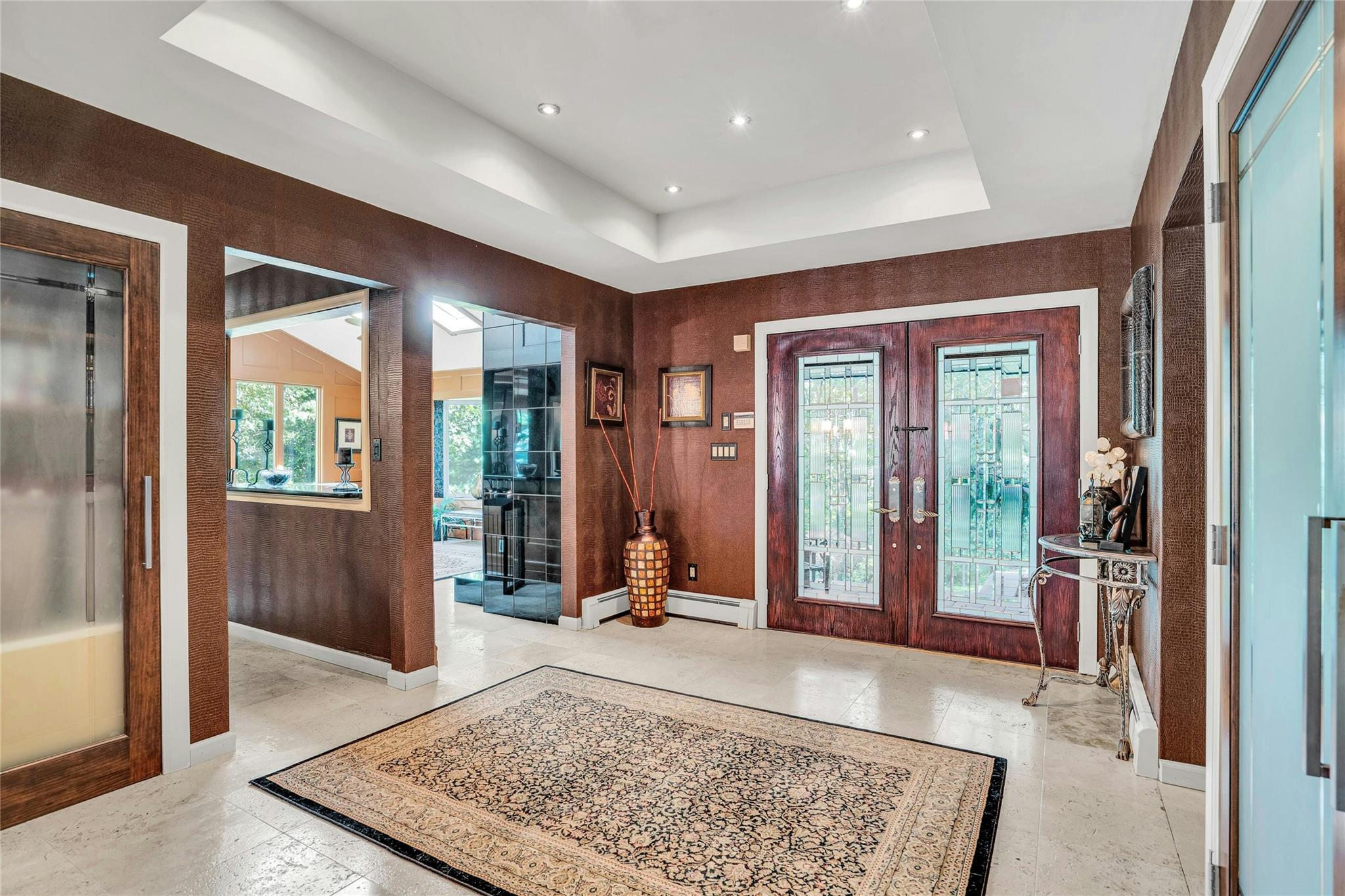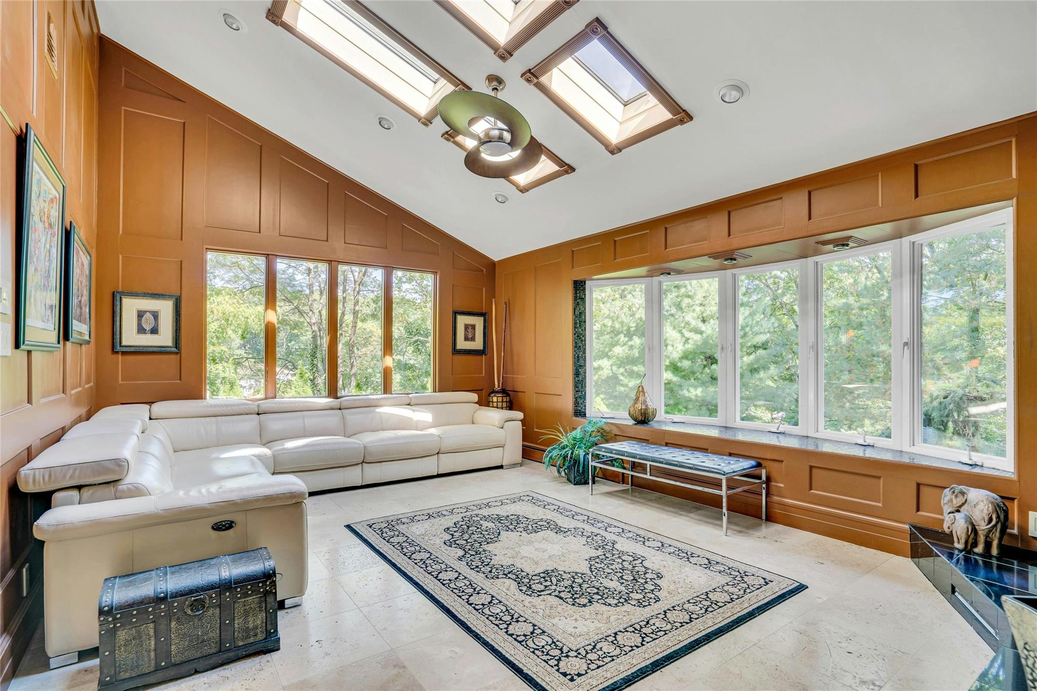 Fabulous ranch!!! Summer is coming and this oasis is waiting for YOU! Gorgeous home decorated and upgraded to perfection. Entry foyer features beautiful tile work and custom closet doors. Formal living room overlooks the yard and flows into the dining room for easy entertaining. The kitchen is state of the art with Bosch appliances and a Thermador refrigerator. Center island duets as a table for 4 with counter seating for 2. Very clever! The den features high ceilings and a natural gas fireplace with lots of windows all around!. True Primary Bedroom has wall of glass overlooking the pool and waterfalls while laying by the fireplace. Updated ensuite bath is a treat. The basement is a great space for entertaining. It is ground level from the garage and has a gym area, pool table and a great space for tools and wood working. There is an office space/4th bedroom with a full bath with an Outside Entrance from the driveway. The 2 car garage is neat and organized and ready for a sports car! Paradise is the only way to describe the backyard! There is an outdoor kitchen with a never used barbecue. After you have a few burgers, stroll on over to the fire pit and roast some marshmallows:) The salt-water heated (by natural gas) pool (features 2 waterfalls and a couple of sprays. The gardens are mature and have full grown arborvitae for privacy. CAC 1.5 yrs, CVAC with hose in the wall, 200 AMP, Washer and Dryer 2 yrs, Cesspool cleaned last year - no issues, Boiler, Pool 8 yrs,; Pool Liner 3 yrs, Filter 7 years, Heated Driveway, Whole House Generator 2yrs, Roof 10 yrs. Laurel Drive Park is down the street and has a tennis court, basketball court, handball court, and a playground., COME AND GET IT!