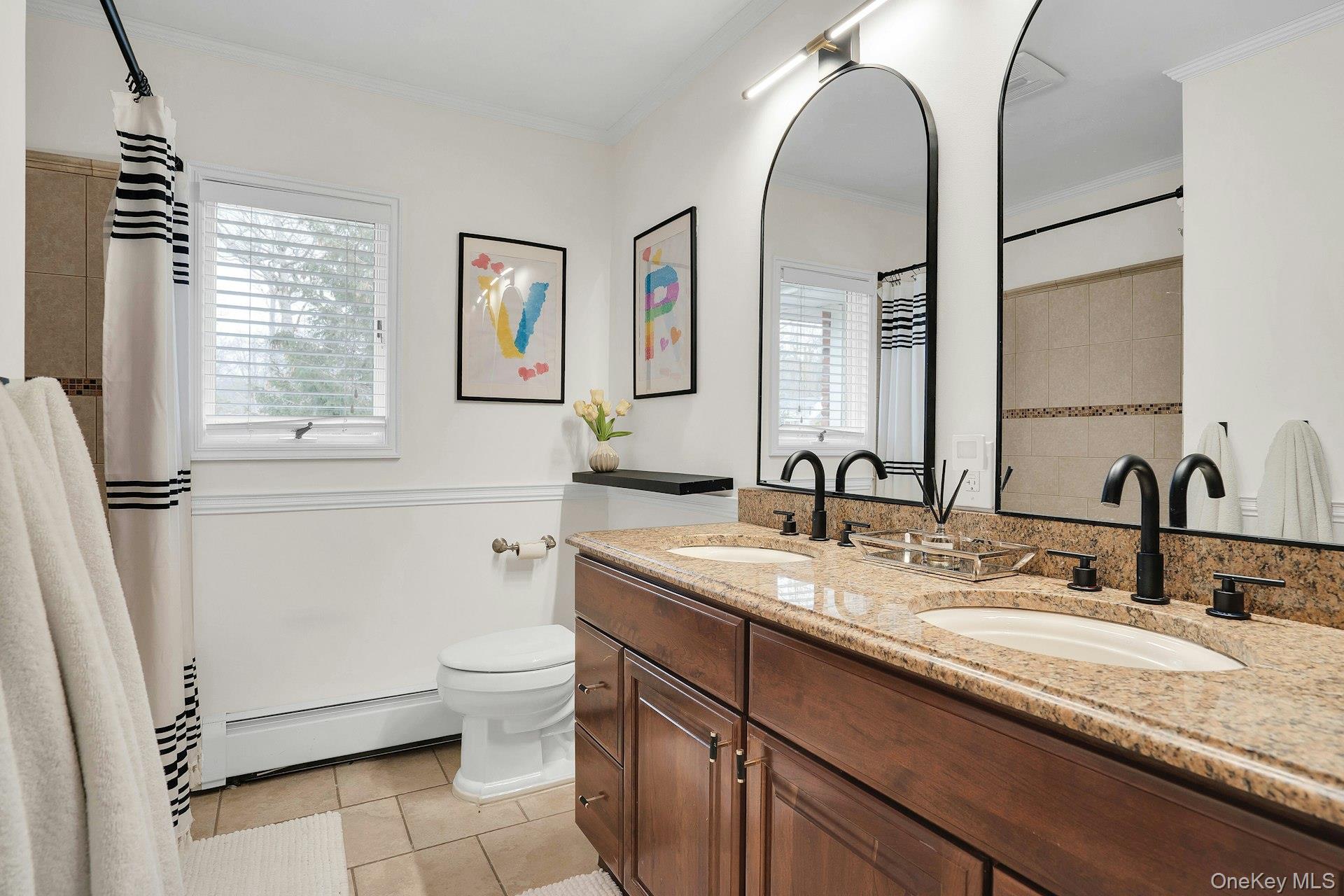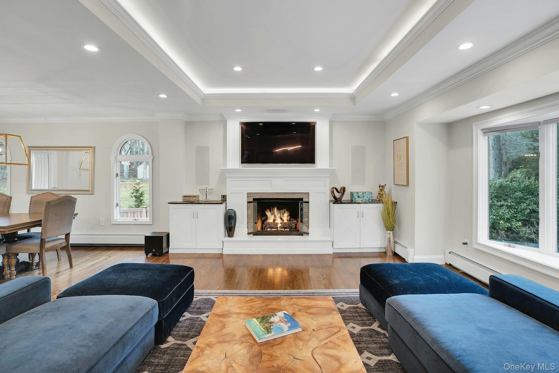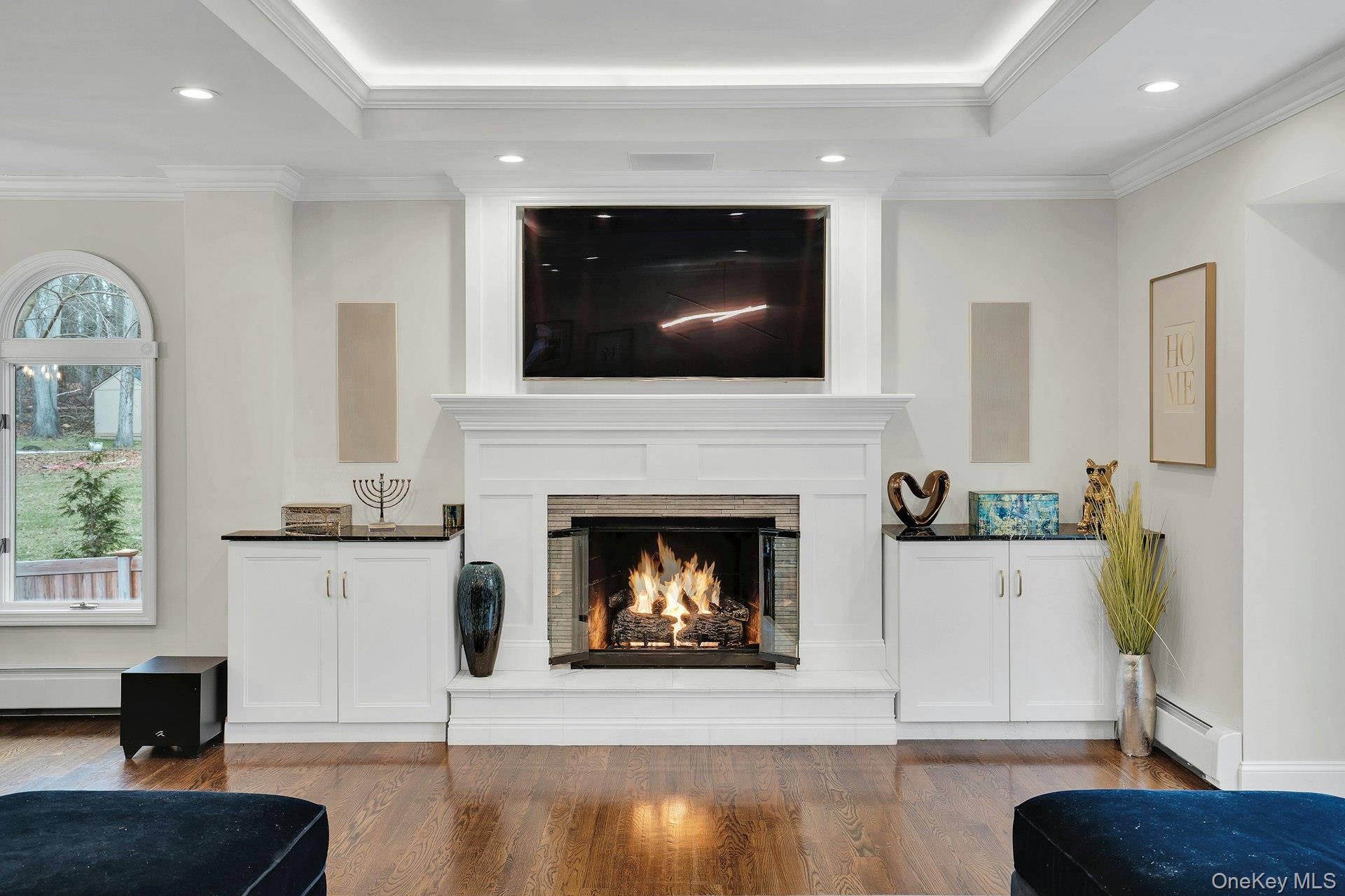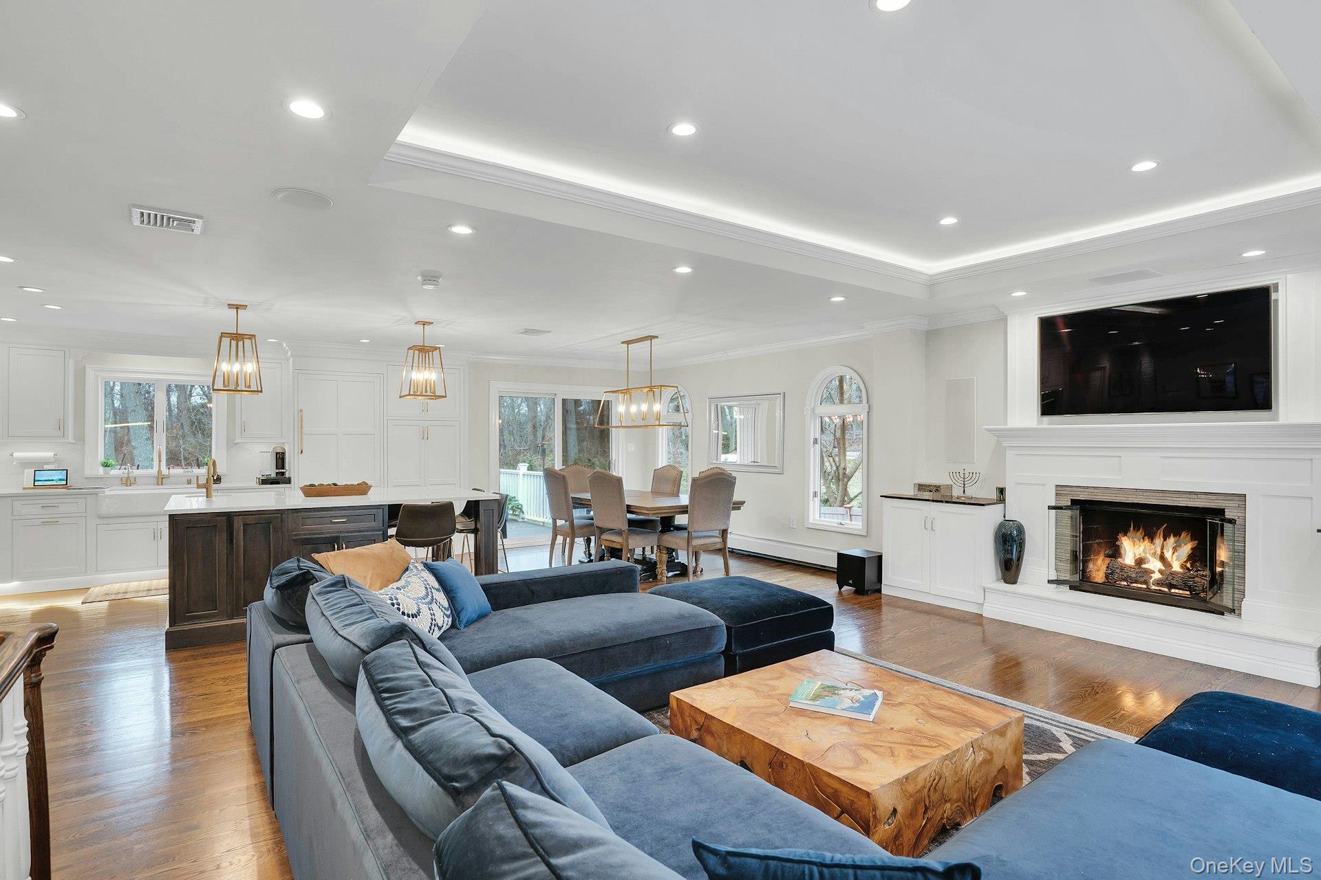 This 5-bedroom, 3 full bathroom home offers a flexible layout with room for extended living and entertaining. The upper level features oak hardwood flooring throughout, an updated custom kitchen with inset cabinetry, paneled refrigerator and dishwasher, and Thermador appliances, flowing into the main living and dining areas. The primary bedroom has been recently refreshed, and the bathrooms have been updated, including a main bath with double sink vanity. Detailed molding work can be found throughout the home.